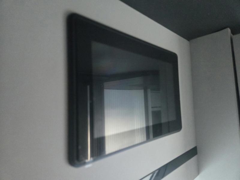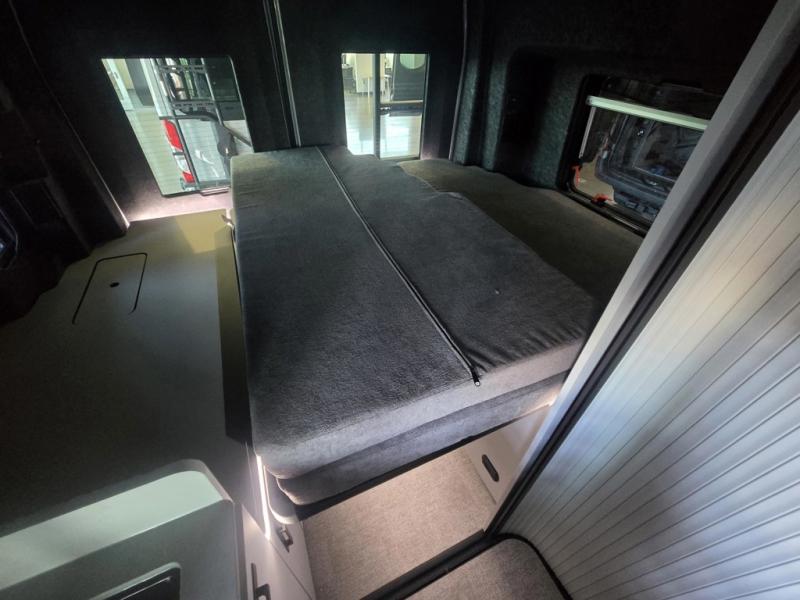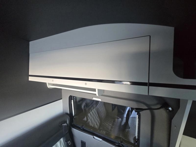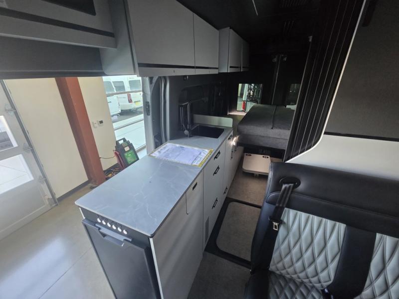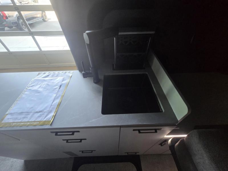 This luxury motorhome for the modern adventurer will be your favorite! The flip-up bed provides a comfortable sleeping area, perfect for restful nights on the road. The entertainment spot is provided in the motorized projector screen, which is ideal for movie nights, sporting events, or presentations, making it a great way to unwind or entertain friends and family. The bathroom provides a private and convenient space for personal needs, and the kitchen features an undermount cooktop, perfect for preparing your favorite meals, 3.2 cu. ft. refrigerator for keeping perishables fresh, and a sink for easy cleanup. The exterior awning provides shade and protection from the elements, while the sliding door offers easy access and added convenience.