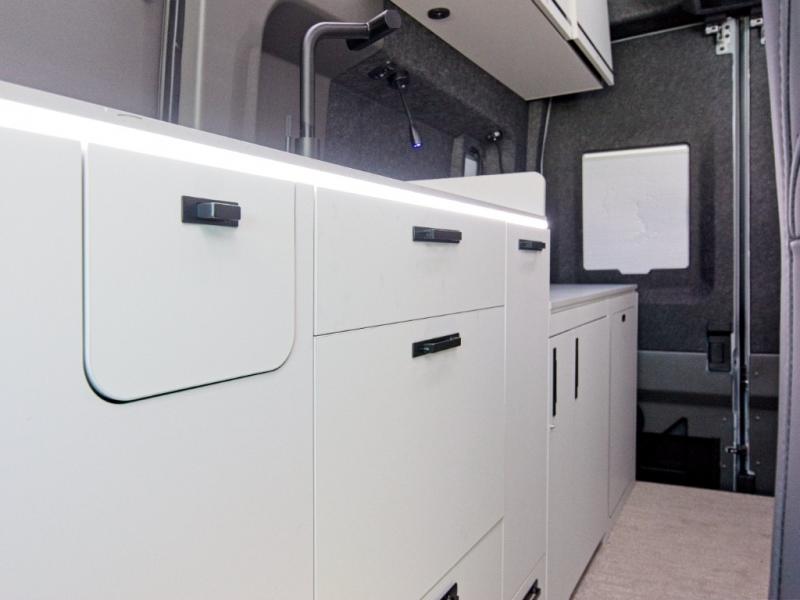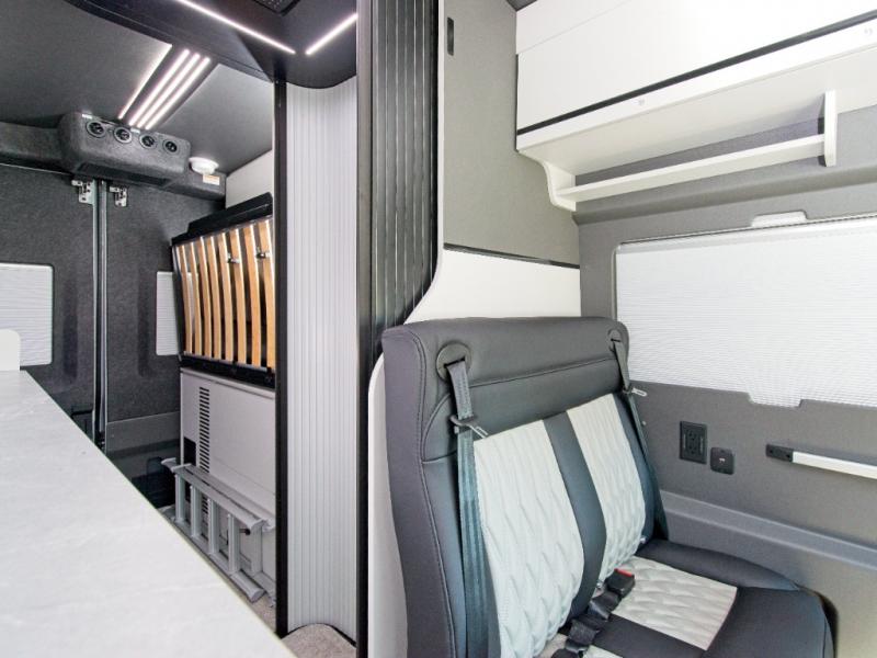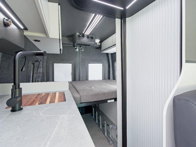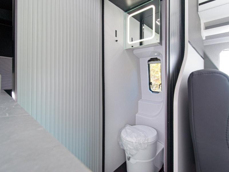 Experience the freedom of all-wheel drive and the convenience of a fully equipped kitchen in the Grand Design Lineage Series VT Class B motorhome—luxury and adventure combined in one sleek package.