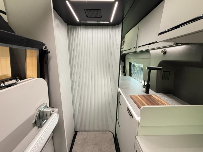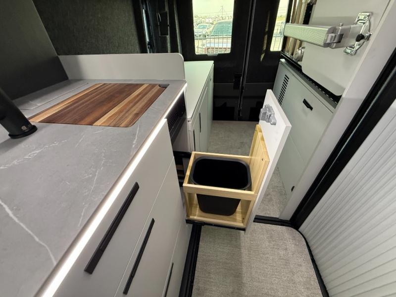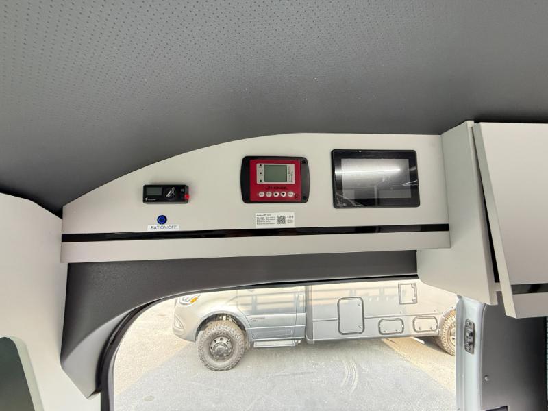 This luxury motorhome for the modern adventurer will be your favorite! The flip-up bed provides a comfortable sleeping area, perfect for restful nights on the road. The entertainment spot is provided in the motorized projector screen, which is ideal for movie nights, sporting events, or presentations, making it a great way to unwind or entertain friends and family. The bathroom provides a private and convenient space for personal needs, and the kitchen features an undermount cooktop, perfect for preparing your favorite meals, 3.2 cu. ft. refrigerator for keeping perishables fresh, and a sink for easy cleanup. The exterior awning provides shade and protection from the elements, while the sliding door offers easy access and added convenience.