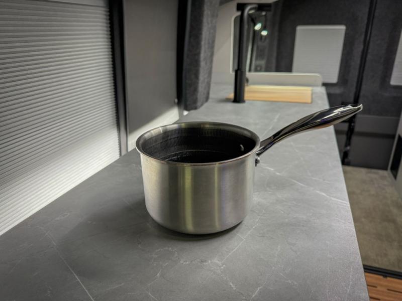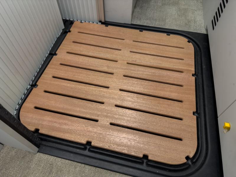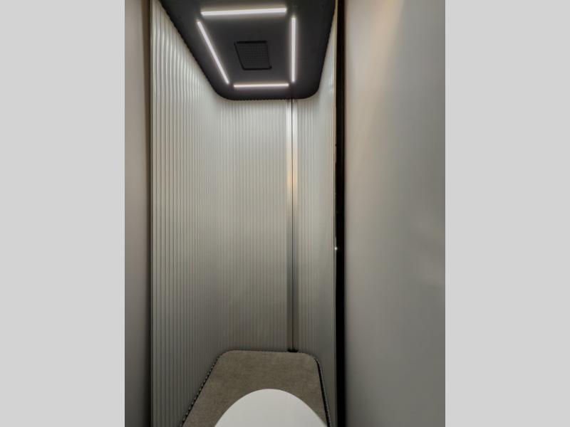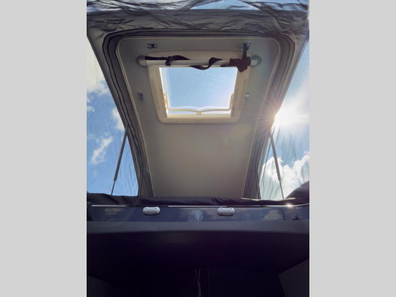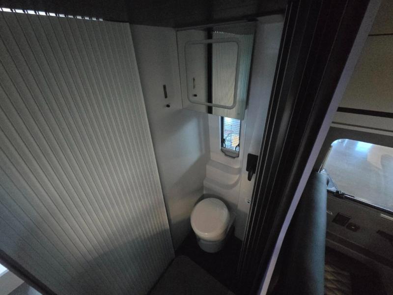This luxury motorhome for the modern adventurer will be your favorite! The flip-up bed provides a comfortable sleeping area, perfect for restful nights on the road. The entertainment spot is provided in the motorized projector screen, which is ideal for movie nights, sporting events, or presentations, making it a great way to unwind or entertain friends and family. The bathroom provides a private and convenient space for personal needs, and the kitchen features an undermount cooktop, perfect for preparing your favorite meals, 3.2 cu. ft. refrigerator for keeping perishables fresh, and a sink for easy cleanup. The exterior awning provides shade and protection from the elements, while the sliding door offers easy access and added convenience.