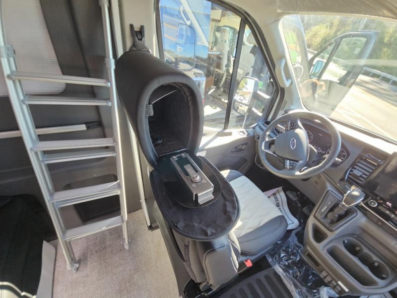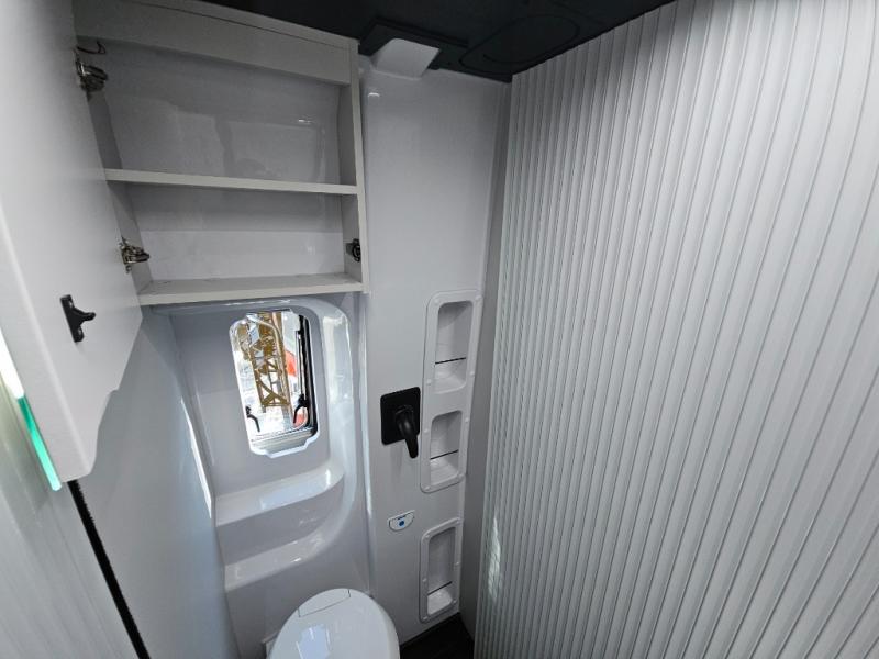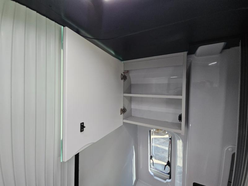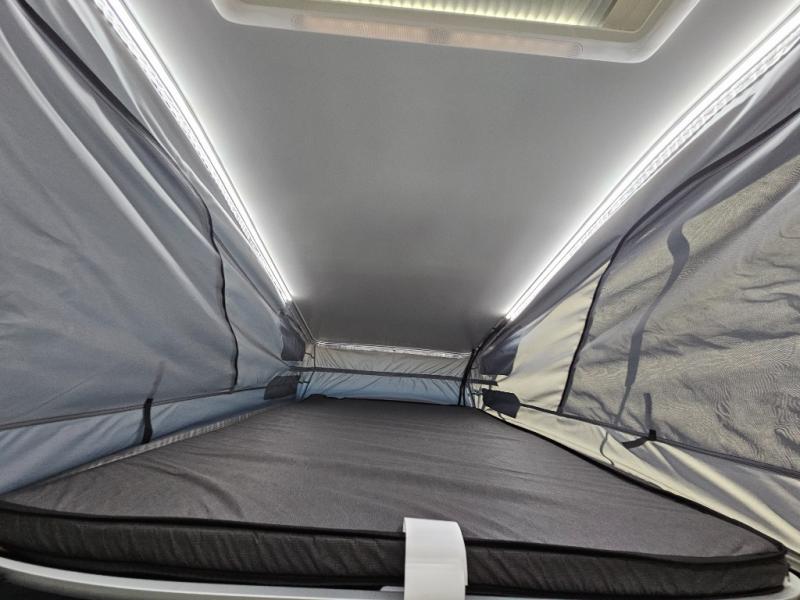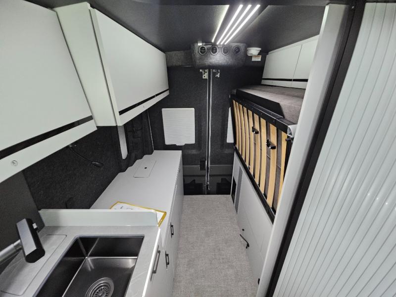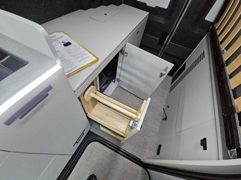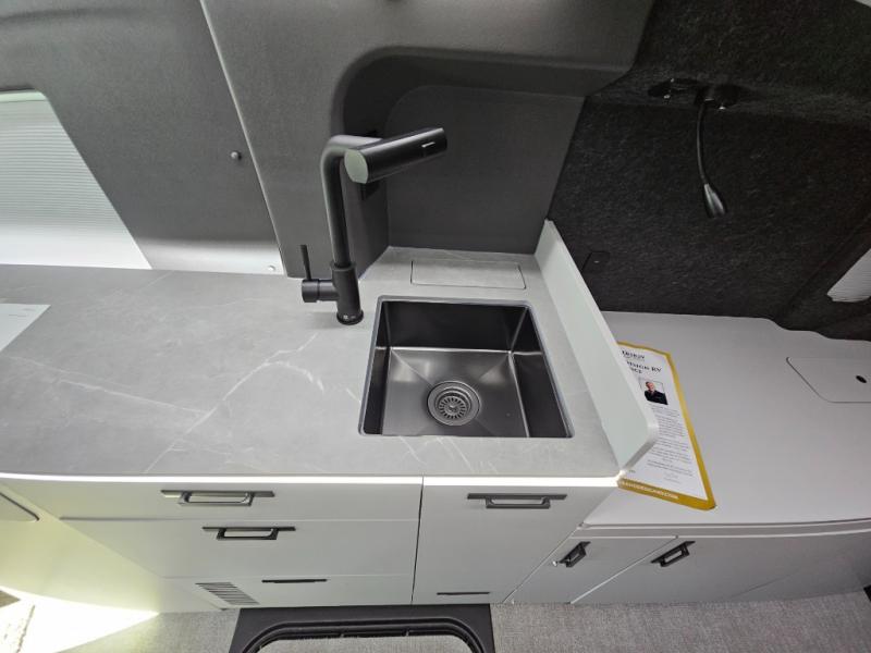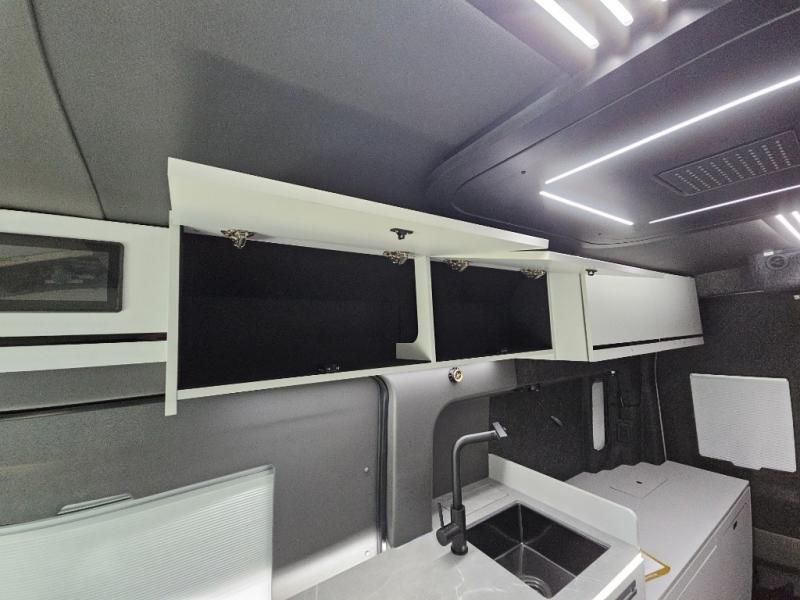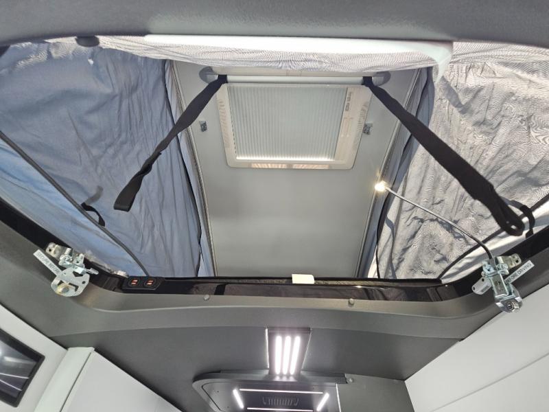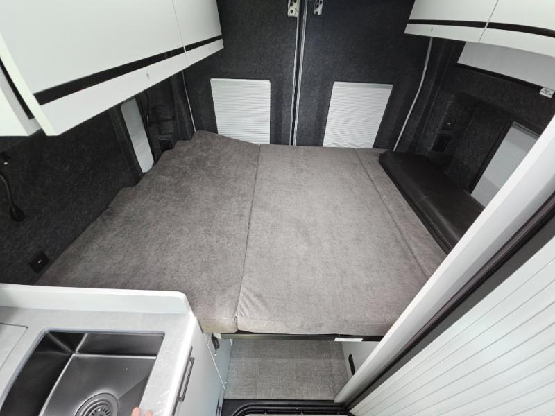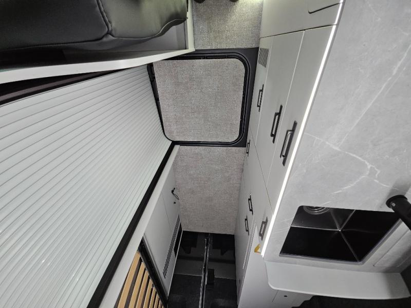 This luxury motorhome for the modern adventurer will be your favorite! The flip-up bed provides a comfortable sleeping area, perfect for restful nights on the road. The entertainment spot is provided in the motorized projector screen, which is ideal for movie nights, sporting events, or presentations, making it a great way to unwind or entertain friends and family. The bathroom provides a private and convenient space for personal needs, and the kitchen features an undermount cooktop, perfect for preparing your favorite meals, 3.2 cu. ft. refrigerator for keeping perishables fresh, and a sink for easy cleanup. The exterior awning provides shade and protection from the elements, while the sliding door offers easy access and added convenience.