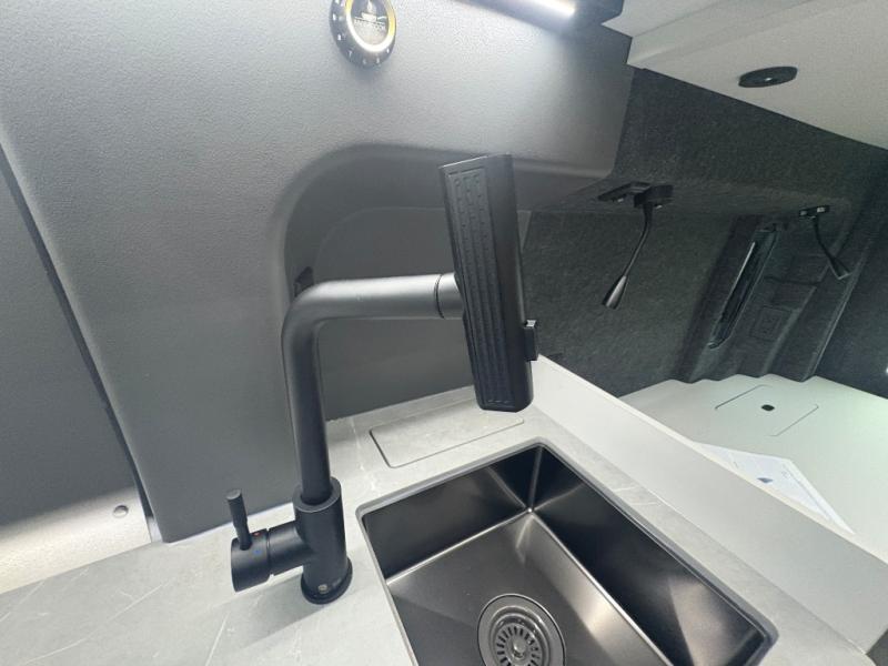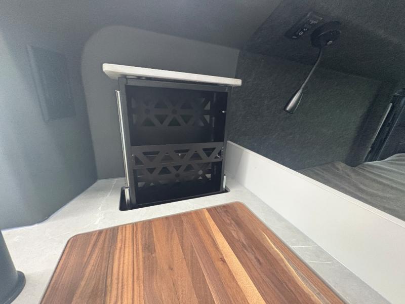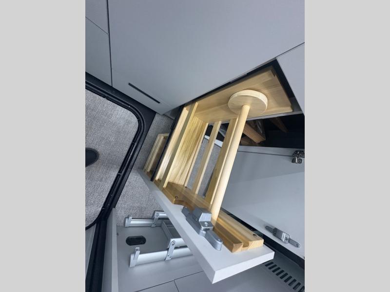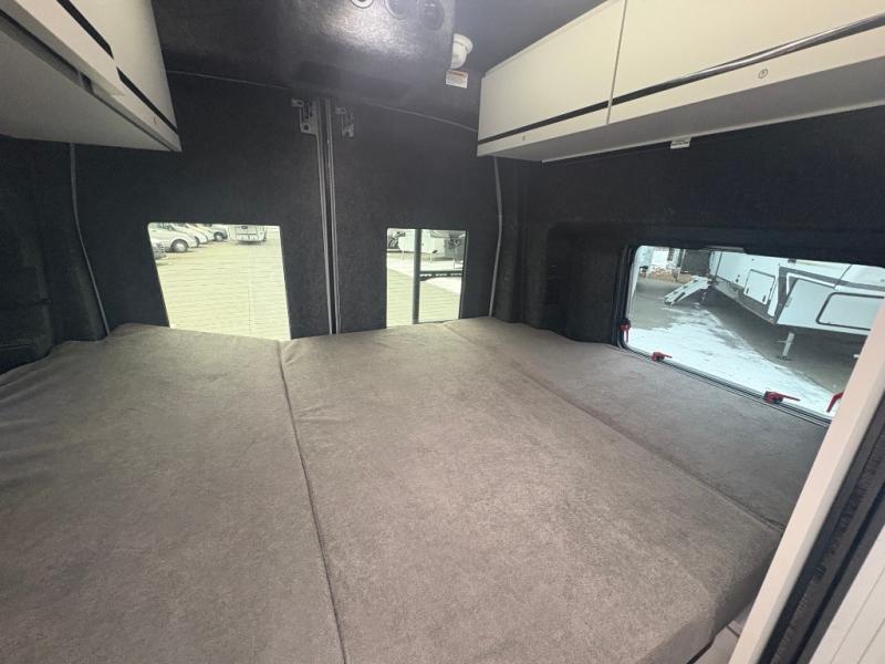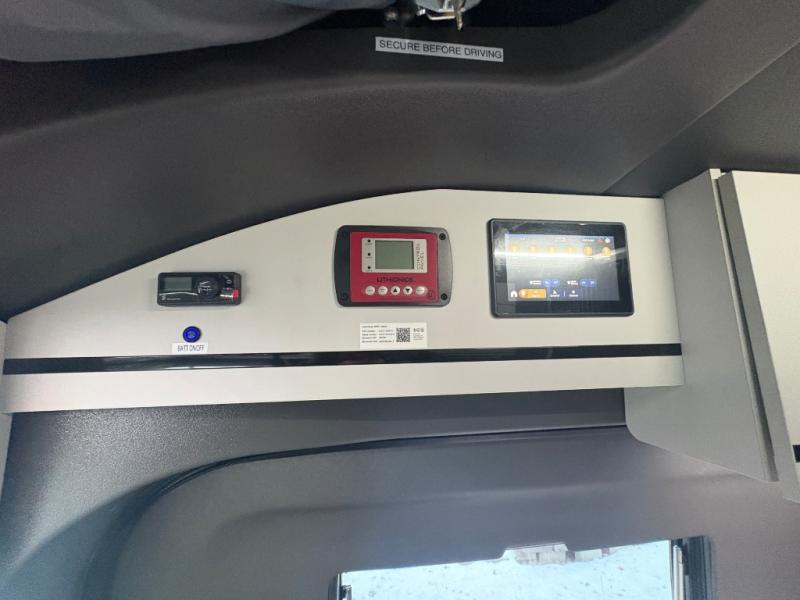 This luxury motorhome for the modern adventurer will be your favorite! The flip-up bed provides a comfortable sleeping area, perfect for restful nights on the road. The entertainment spot is provided in the motorized projector screen, which is ideal for movie nights, sporting events, or presentations, making it a great way to unwind or entertain friends and family. The bathroom provides a private and convenient space for personal needs, and the kitchen features an undermount cooktop, perfect for preparing your favorite meals, 3.2 cu. ft. refrigerator for keeping perishables fresh, and a sink for easy cleanup. The exterior awning provides shade and protection from the elements, while the sliding door offers easy access and added convenience.