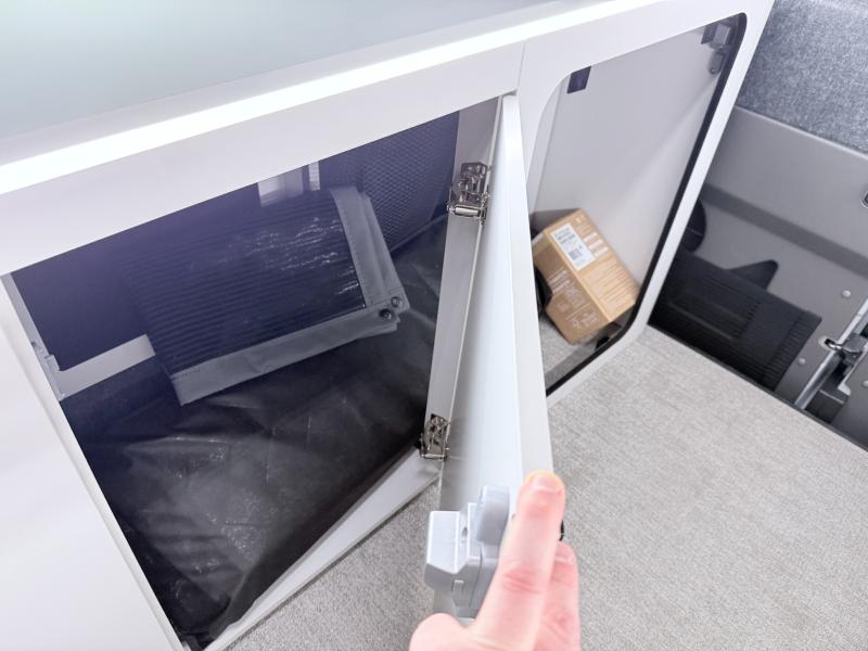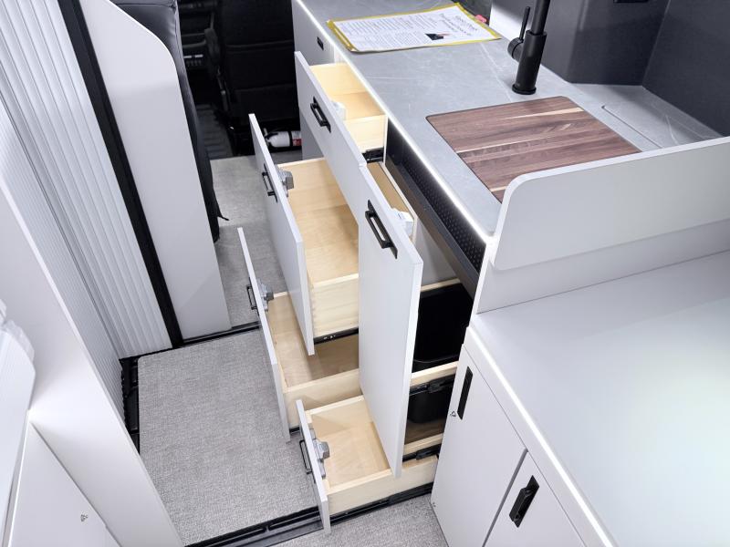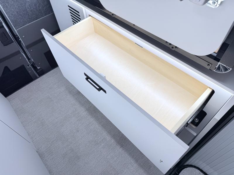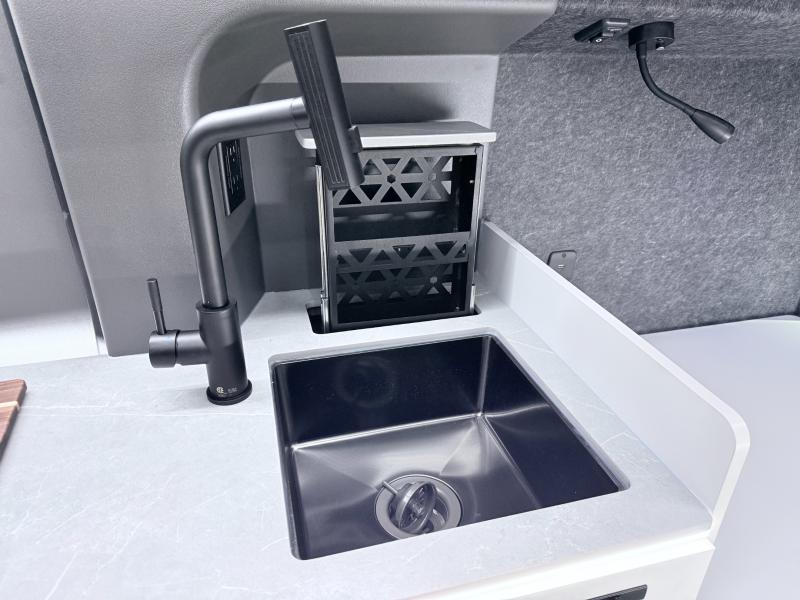 This luxury motorhome for the modern adventurer will be your favorite! The flip-up bed provides a comfortable sleeping area, perfect for restful nights on the road. The entertainment spot is provided in the motorized projector screen, which is ideal for movie nights, sporting events, or presentations, making it a great way to unwind or entertain friends and family. The bathroom provides a private and convenient space for personal needs, and the kitchen features an undermount cooktop, perfect for preparing your favorite meals, 3.2 cu. ft. refrigerator for keeping perishables fresh, and a sink for easy cleanup. The exterior awning provides shade and protection from the elements, while the sliding door offers easy access and added convenience.