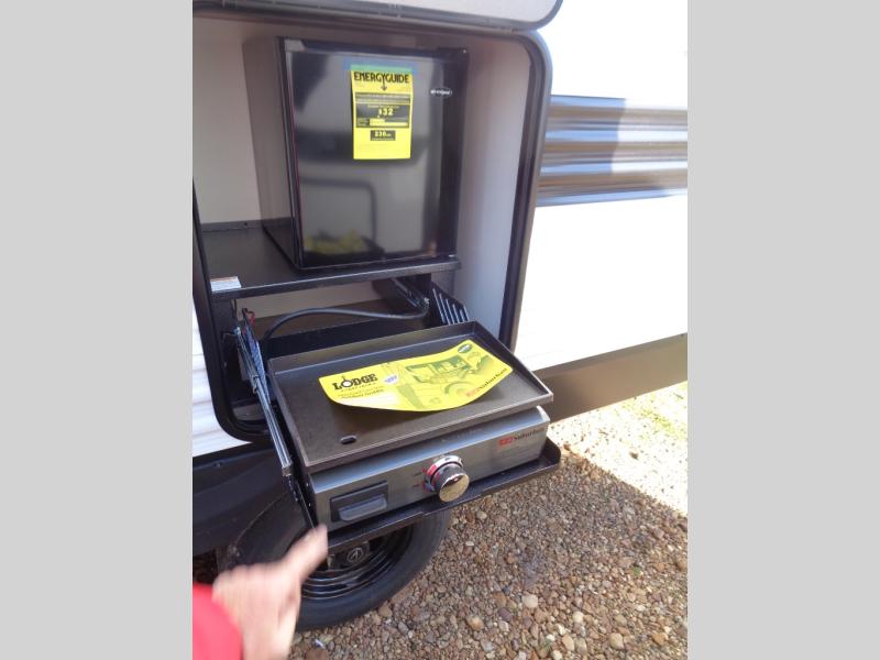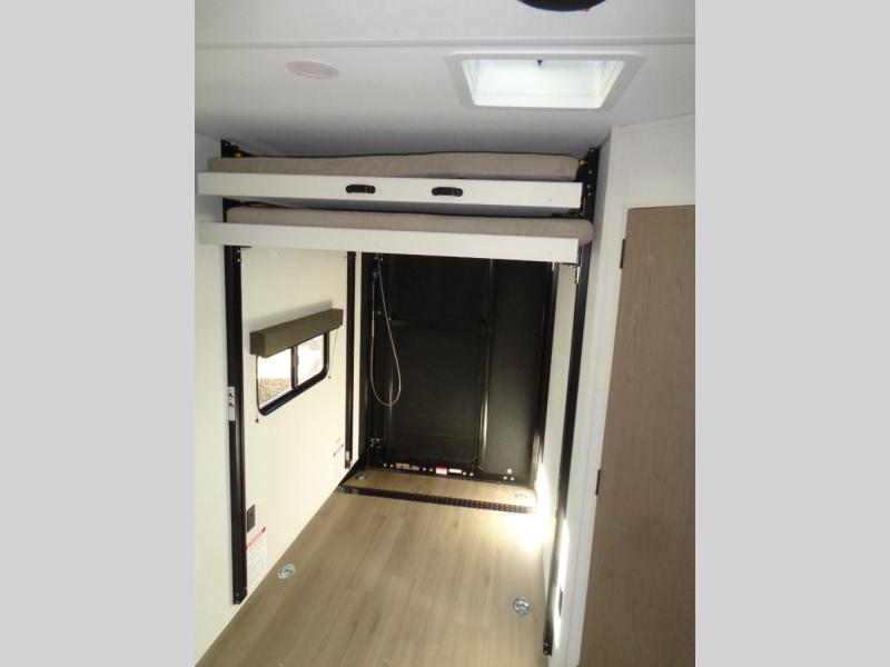 Just imagine you are unloading your toys at your favorite destination from 16' 6" of cargo space in this Momentum G-Class toy hauler. The chef of the family will love having the option to cook indoors or outdoors at the outside kitchen that includes an exterior refrigerator for cold drinks. You will have Happi-Jac rollover sofas and a third rollover sofa for your guests to sleep on, while you take the queen bed slide out in the front bedroom. And an optional top bed can be added above the sofas if you need more sleeping space!