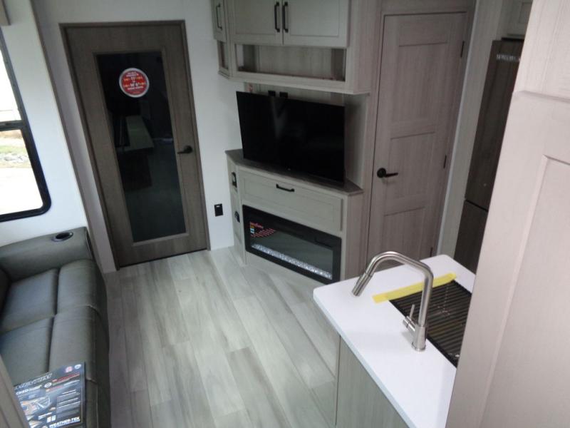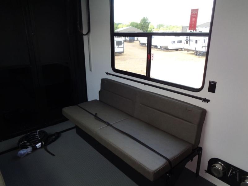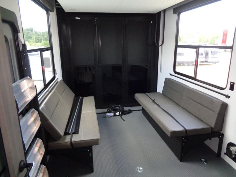 Just imagine the fun you will have with this Momentum G-Class toy hauler set up at any off-road park. With the 14' 6" separate garage that includes a half bath, a second exterior entry door, and a loft, you will have your own area to do what you like. The rear ramp door can even be converted into a patio if you need more outdoor living space. The main living area offers a fireplace, theater seating, and kitchen appliances to make delicious home cooked meals. You will also be able to stay clean and ready for the next ride with the walk-in shower in the full bathroom, and the front master bedroom has plenty of storage for clothing with the wardrobe slide and overhead cabinets.