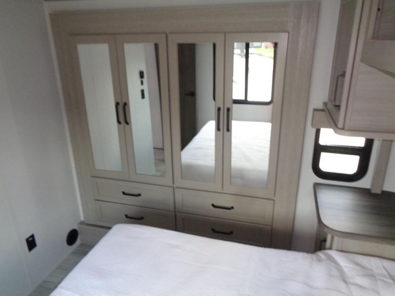 DUSK, BEDROOM A/C, 3RD A/C PREP, 15 CU FT 12V REFER, 3RD A/C, MOMENTUM GARAGE SUITE FEATURING P2K BED LIFT, REAR ALUMINUM DECK SYSTEM W/REAR POWER AWNING 2ND AWNING, 8K AXLE W/ABS DRUM BRAKES (DOUBLE AXLE)- Gadsden store