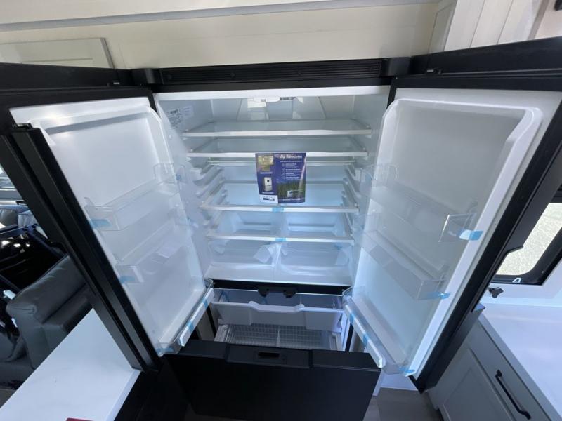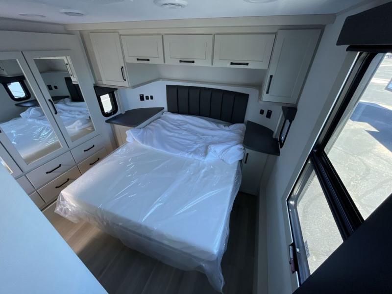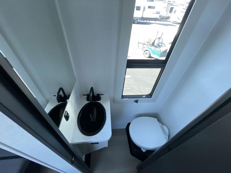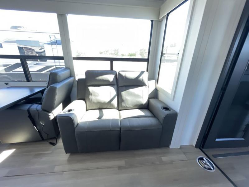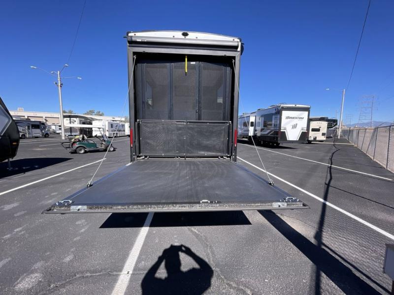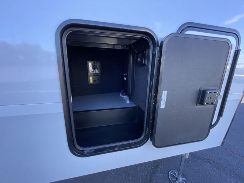 You want a toy hauler to carry your toys to the trails, and include many at-home comforts, and that's just what this unit delivers. A 14' separate garage includes an adjustable tie-down system, a Liftsuite System for more sleeping space, an optional half bath, plus washer and dryer prep. There is an overhead loft bed and an L-shaped sofa with recline in the main living area that offers sleeping space as well. Everyone can watch a movie on the LED TV with a fireplace below while sitting on the sofa, in the theatre seats, or while at the free-standing dinette with four chairs. The chef will have upgraded appliances to make meals for everyone, including an L-shaped countertop with a kitchen sink. You will love the shower with seat in the full bathroom with two space savings sliding doors that lead into the hallway, and into the front bedroom where you will have a queen bed, a slide out wardrobe and more more storage.
