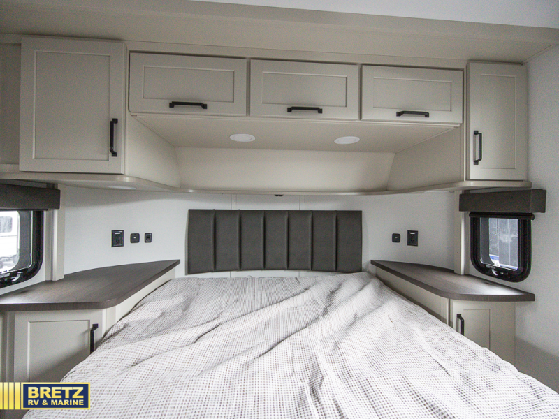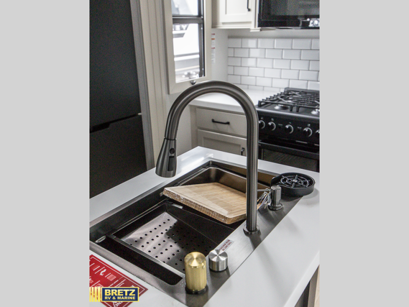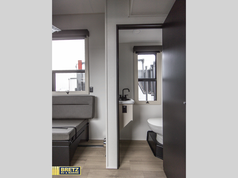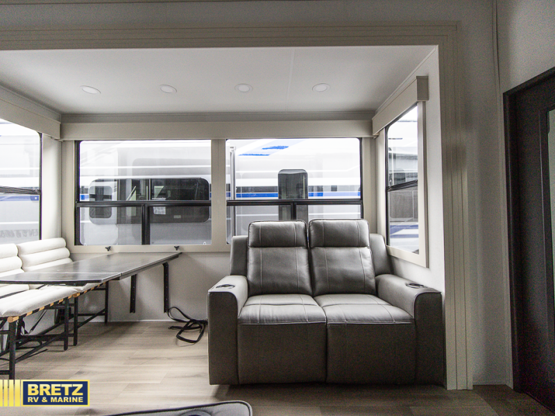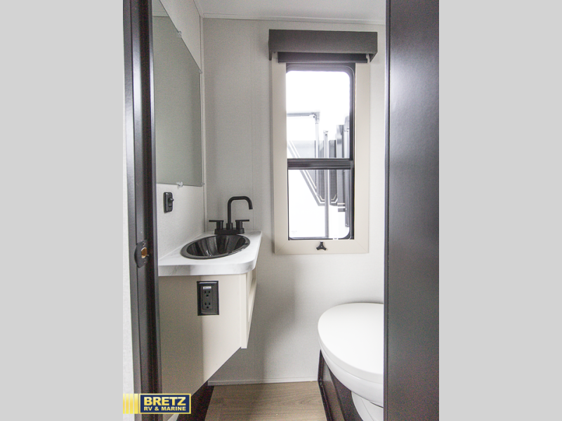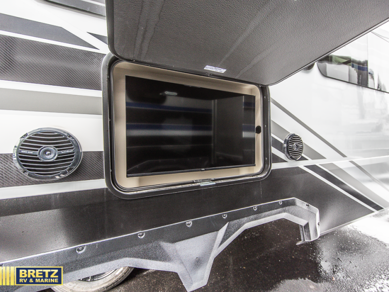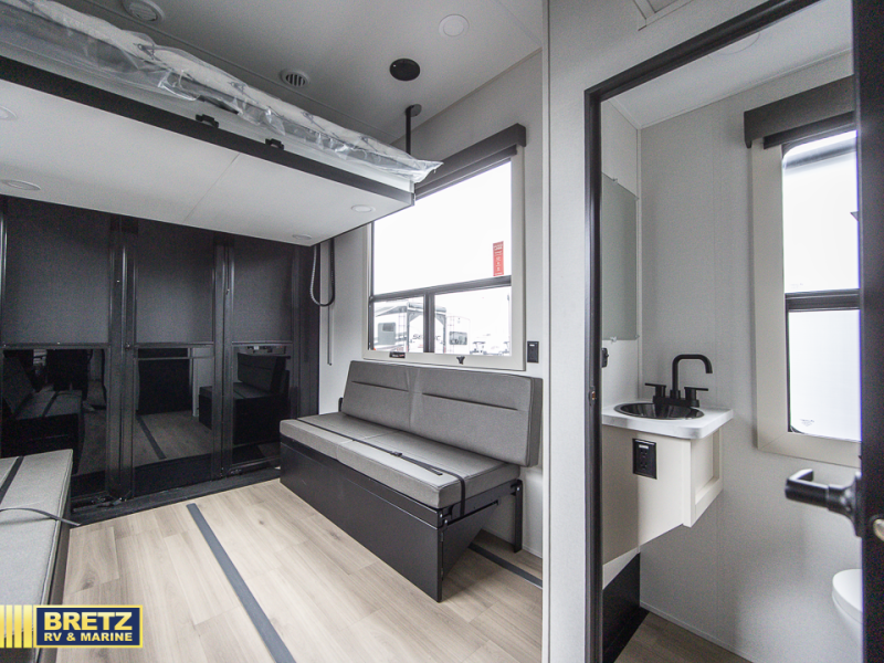 You want a toy hauler to carry your toys to the trails, and include many at-home comforts, and that's just what this unit delivers. A 14' separate garage includes an adjustable tie-down system, an optional Liftsuite System for more sleeping space, an optional half bath, plus washer and dryer prep. There is an overhead loft bed and an L-shaped sofa with recline in the main living area that offers sleeping space as well. Everyone can watch a movie on the LED TV with a fireplace below while sitting on the sofa, in the theatre seats, or while at the free-standing dinette with four chairs. The chef will have upgraded appliances to make meals for everyone, including an L-shaped countertop with a kitchen sink. You will love the shower with seat in the full bathroom with two space savings sliding doors that lead into the hallway, and into the front bedroom where you will have a queen bed, a slide out wardrobe and more storage.