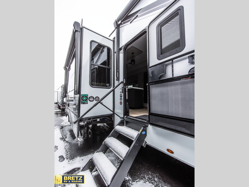 The Momentum fifth wheel toy haulers by Grand Design are built for four seasons of travel with your off-road toys and include luxurious accommodations throughout for extreme living! Each is constructed to a superior standard with the fully enclosed and heated underbelly and storage area, the 5-sided aluminum cage, and the triple insulated garage floor. The MORryde independent suspension 2.0 and rubber pin box, plus the upgraded axle hangers provide the performance and smooth towing you desire, while the interior offers luxury such as color changing LED accent lighting, hardwood cabinet doors with hidden hinges, and a central vacuum system. Each toy hauler also includes four packages, including the Garage Package with Tuff-Ply gas and oil-resistant flooring, the Weather-Tek Package with a Stealth AC System, and the Interior Luxury Package with solid surface countertops!