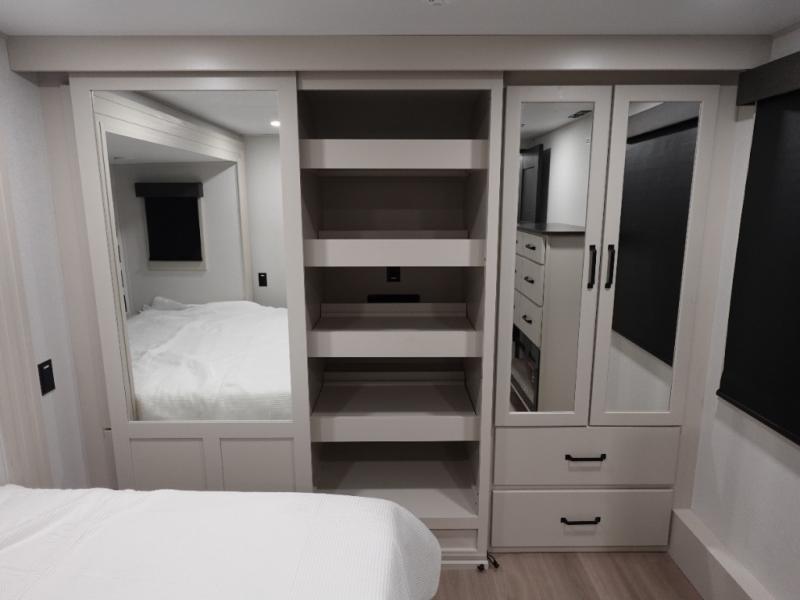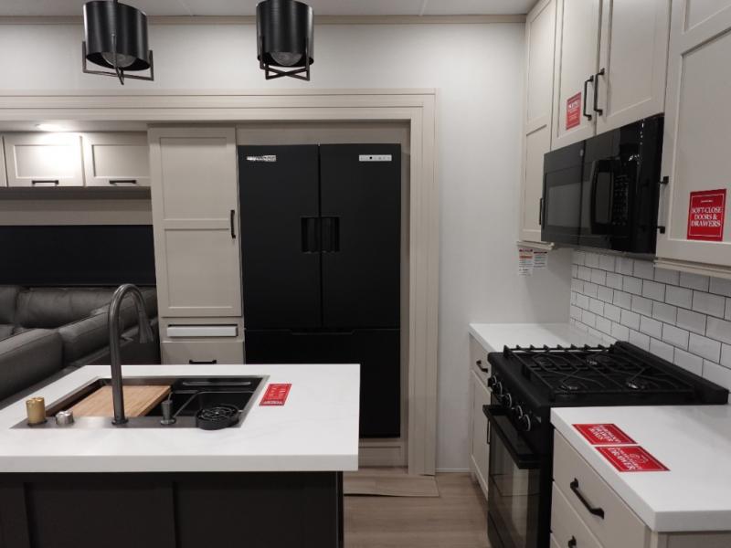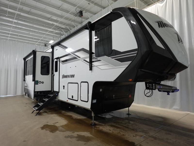 The Momentum fifth wheel toy haulers by Grand Design are built for four seasons of travel with your off-road toys and include luxurious accommodations throughout for extreme living! Each is constructed to a superior standard with the fully enclosed and heated underbelly and storage area, the 5-sided aluminum cage, and the triple insulated garage floor. The MORryde CRE3000 suspension system and rubber pin box, plus the upgraded axle hangers provide the performance and smooth towing you desire, while the interior offers luxury such as color changing LED accent lighting, hardwood cabinet doors with hidden hinges, and a central vacuum system. Each toy hauler also includes four packages, including the Garage Package with Tuff-Ply gas and oil-resistant flooring, the Weather-Tek Package with a Stealth AC System, and the Interior Luxury Package with solid surface countertops!