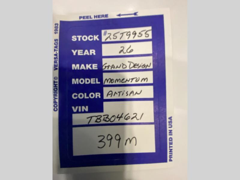New 2026 Grand Design Momentum 399M Toy Hauler Fifth Wheel