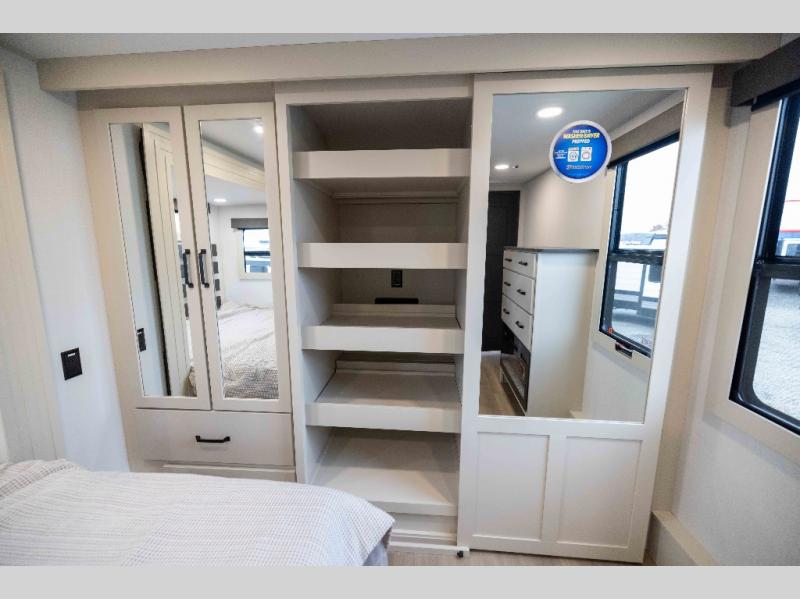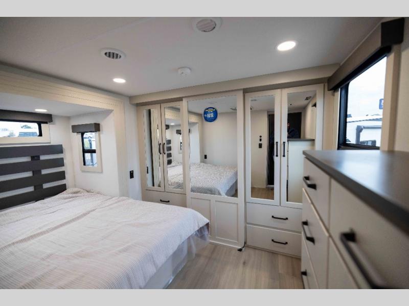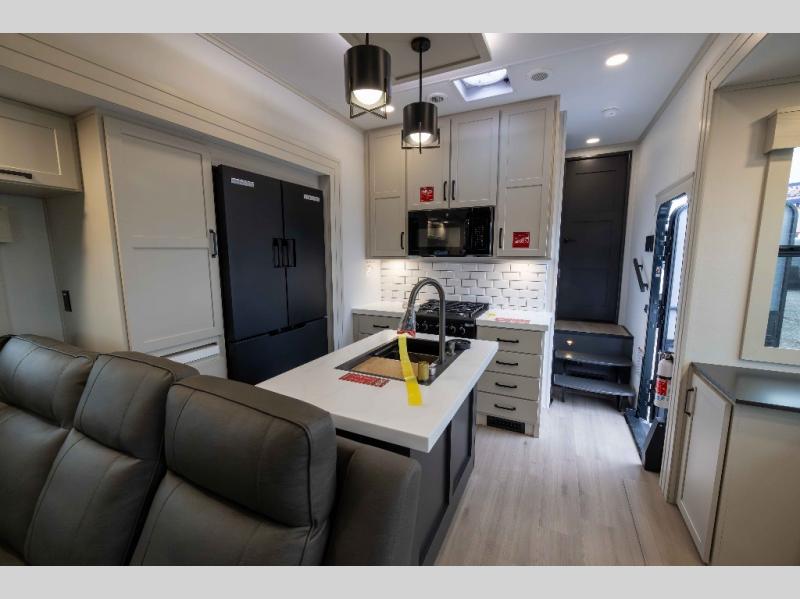 The Momentum fifth wheel toy haulers by Grand Design are built for four seasons of travel with your off-road toys and include luxurious accommodations throughout for extreme living! Each is constructed to a superior standard with the fully enclosed and heated underbelly and storage area, the 5-sided aluminum cage, and the triple insulated garage floor. The MORryde CRE3000 suspension system and rubber pin box, plus the upgraded axle hangers provide the performance and smooth towing you desire, while the interior offers luxury such as color changing LED accent lighting, hardwood cabinet doors with hidden hinges, and a central vacuum system. Each toy hauler also includes four packages, including the Garage Package with Tuff-Ply gas and oil-resistant flooring, the Weather-Tek Package with a Stealth AC System, and the Interior Luxury Package with solid surface countertops!