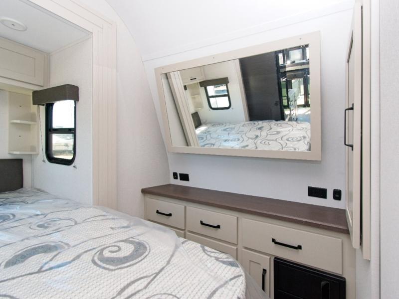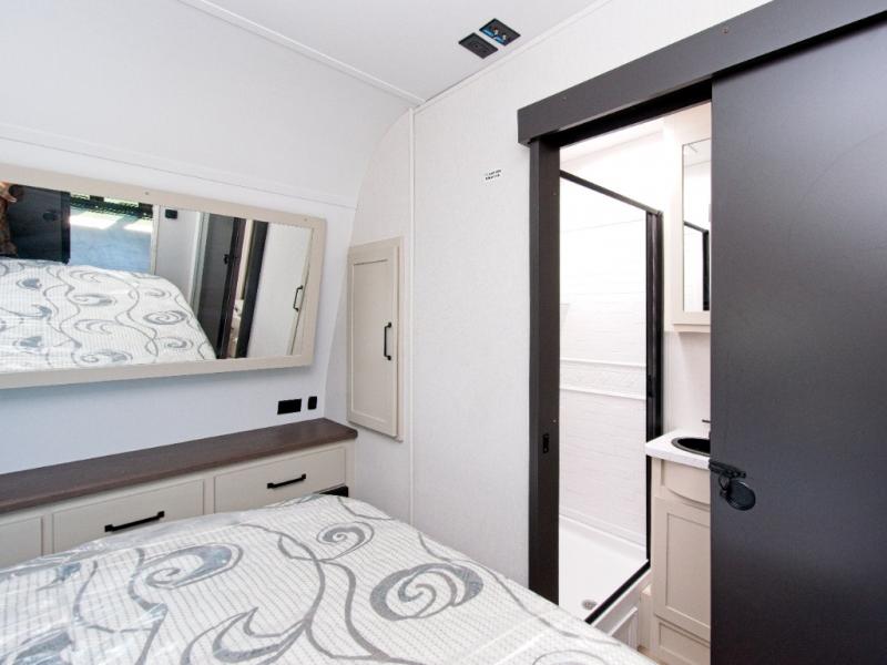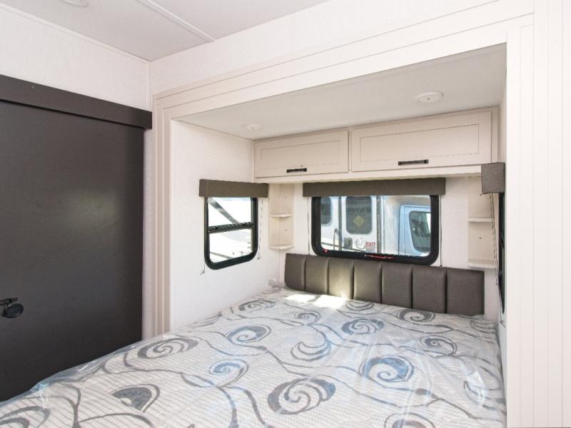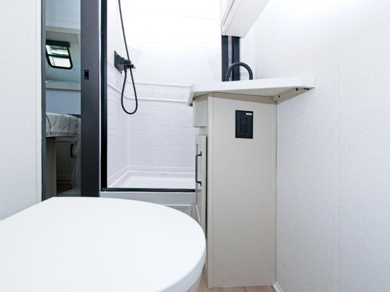 After a day of adventure, retreat to your private master suite featuring a walk-around queen bed slide and direct access to the dual-entry bathroom. The Euro chairs provide a cozy spot to unwind, while the ramp door doubles as a patio, creating the ultimate indoor-outdoor living experience.
