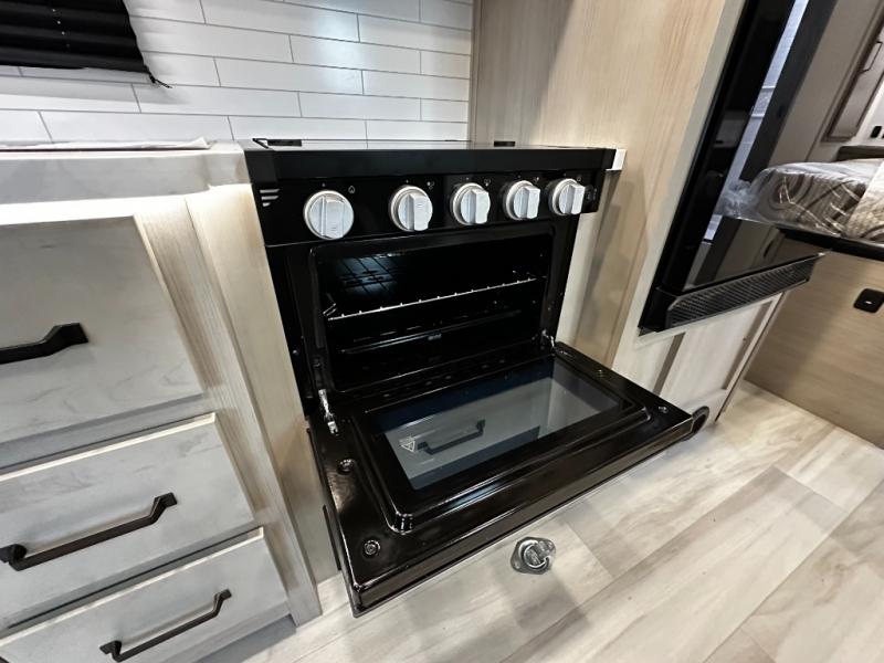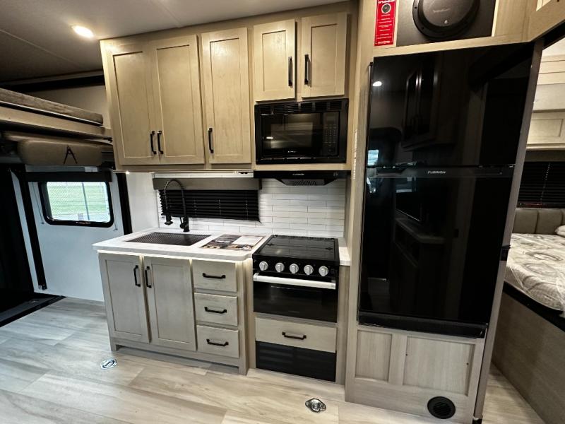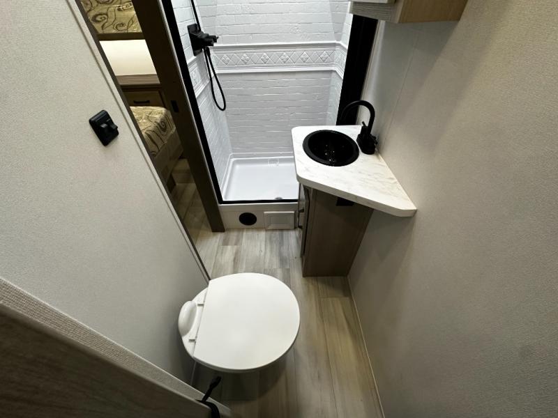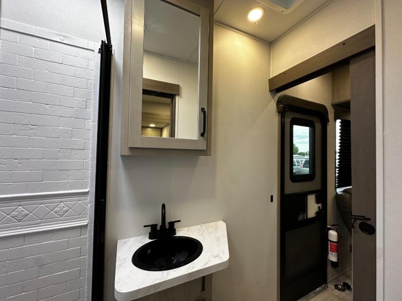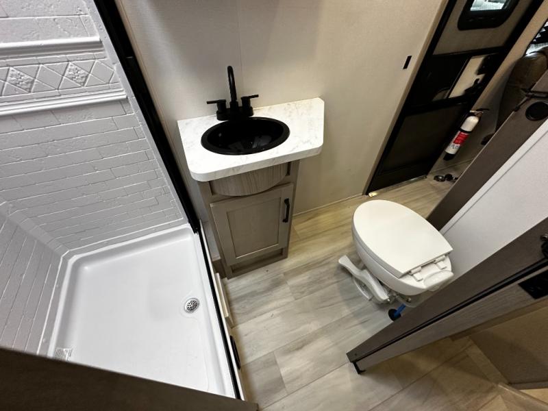 Queen Bed Slide & Master Suite – Enjoy a private retreat with a walk-around queen bed, ample storage, and direct access to the bathroom.