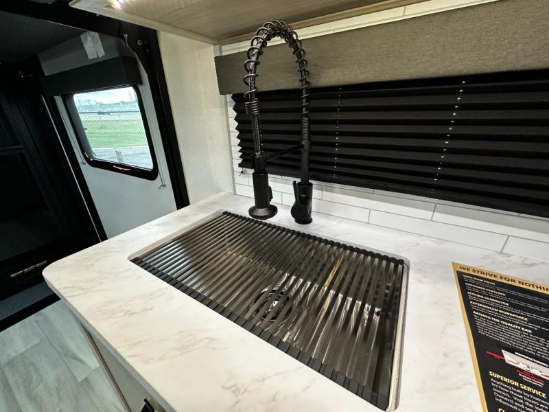 Spacious 14' Garage – Secure your toys with 2,500-lb. tie-downs bolted into the chassis. Once unloaded, the garage transforms into a living and sleeping zone.