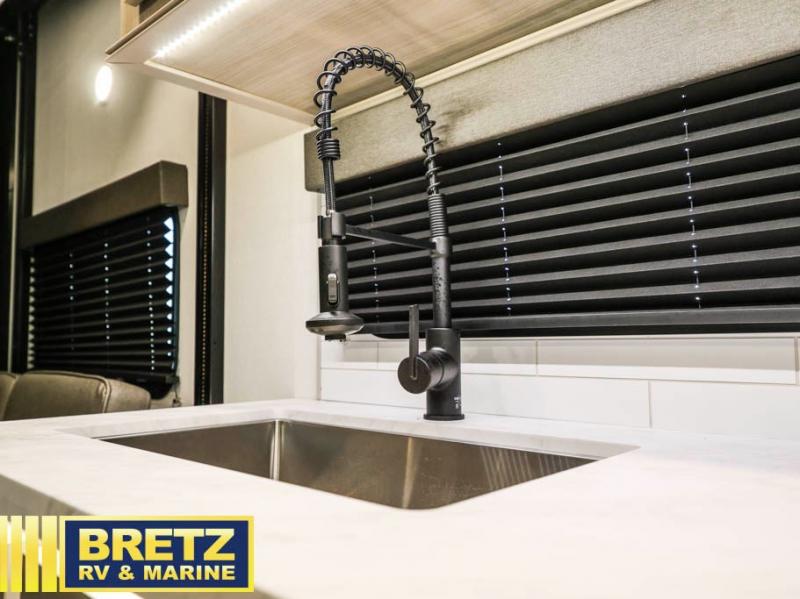 Are you looking for adventure and fun? The Momentum G-Class toy hauler by Grand Design will help you find it! You can explore during any season you choose with the Insulation Package that includes a heated and enclosed underbelly with suspended tanks, a high-capacity furnace, a moisture barrier floor enclosure, and cabinet-mounted heat ducts. Each model includes a fuel station with an interior and exterior gauge, a dovetail rear rend, and 2,500-LB tie-downs anchored into the chassis. Throughout the Momentum G-Class interior, you'll enjoy many comfortable features like large panoramic windows, a shower skylight, USB chargers in the bedroom, and residential cabinetry.