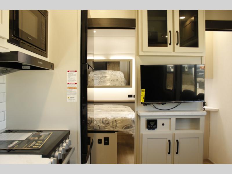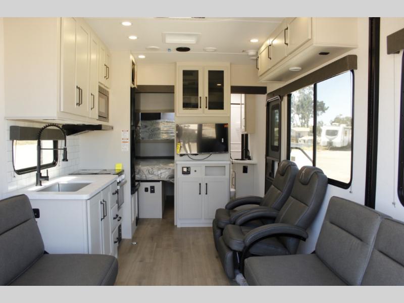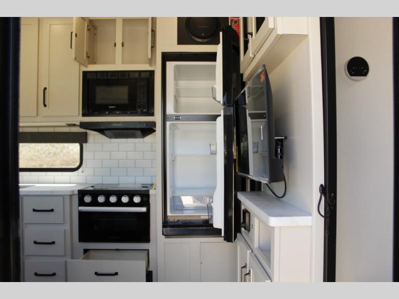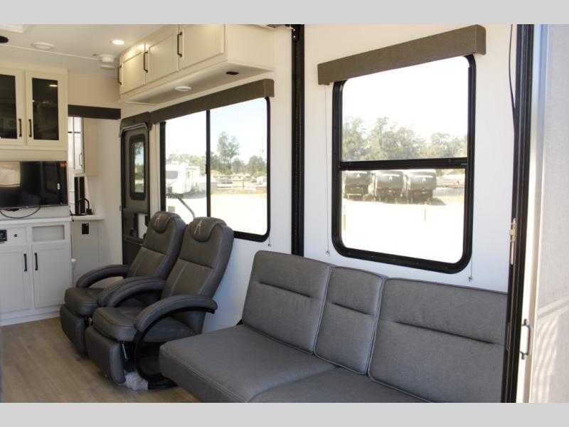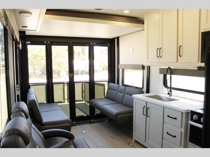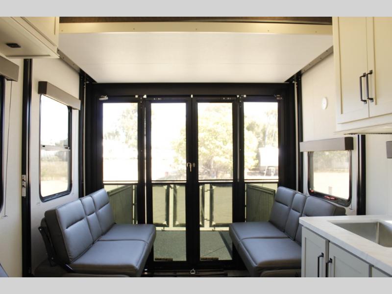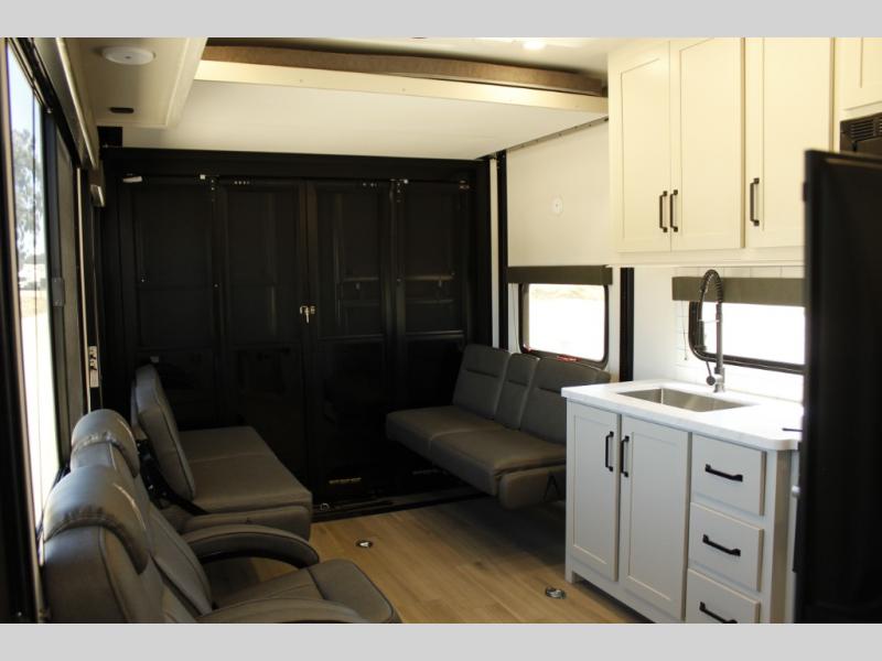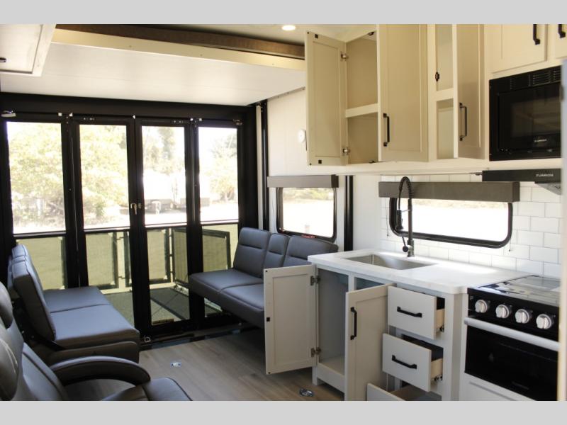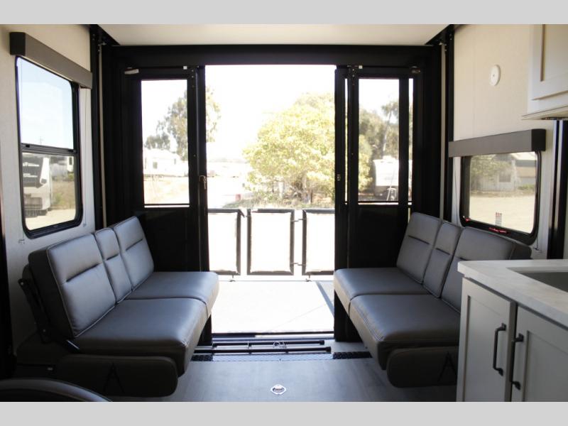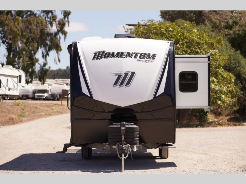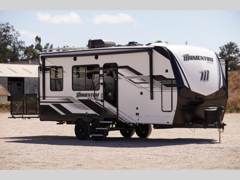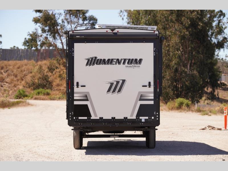 Are you looking for adventure and fun? The Momentum G-Class toy hauler by Grand Design will help you find it! You can explore during any season you choose with the Insulation Package that includes a heated and enclosed underbelly with suspended tanks, a high-capacity furnace, a moisture barrier floor enclosure, and cabinet-mounted heat ducts. Each model includes a fuel station with an interior and exterior gauge, a dovetail rear rend, and 2,500-LB tie-downs anchored into the chassis. Throughout the Momentum G-Class interior, you'll enjoy many comfortable features like large panoramic windows, a shower skylight, USB chargers in the bedroom, and residential cabinetry.