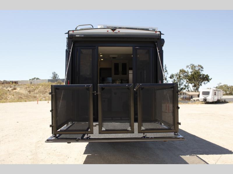 You don't have to rough it with all the amenities found in this Momentum G-Class toy hauler including your own master suite with a walk-around queen bed slide and private access into the dual-entry bathroom. The kids or your friends can sleep on the Happi-Jac rollover sofas with an optional top bed, and the Euro chairs can become the waiting area for the next rider. Keep the party going all weekend long with your very own fuel station and the 19' power awning. Come see why this model will fit perfectly into your off-road lifestyle!