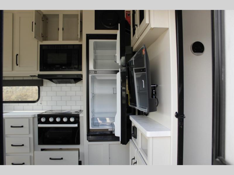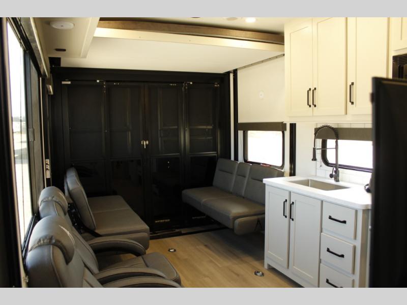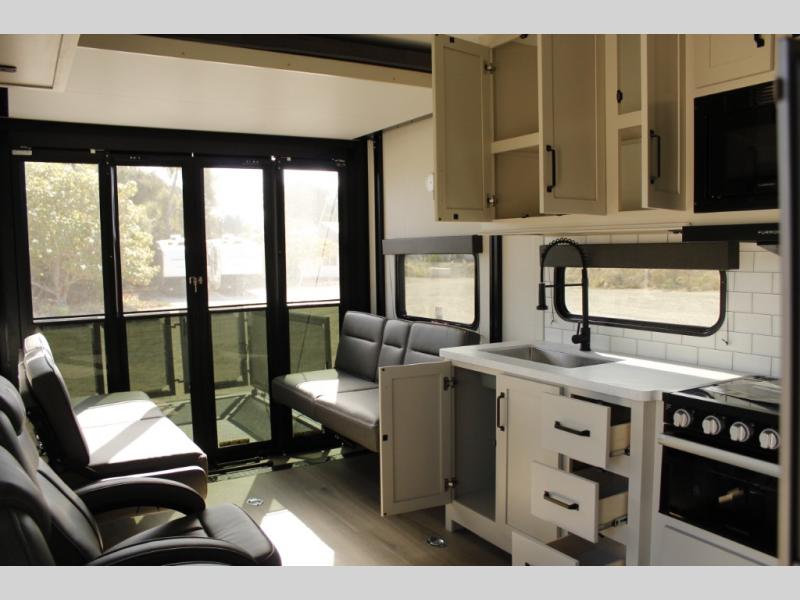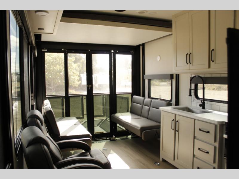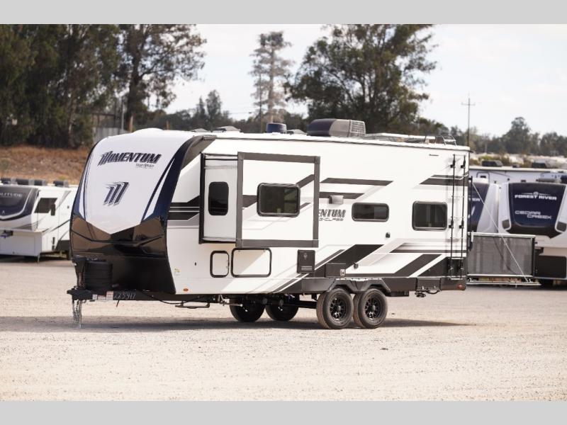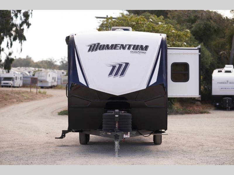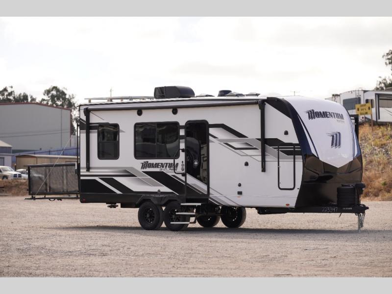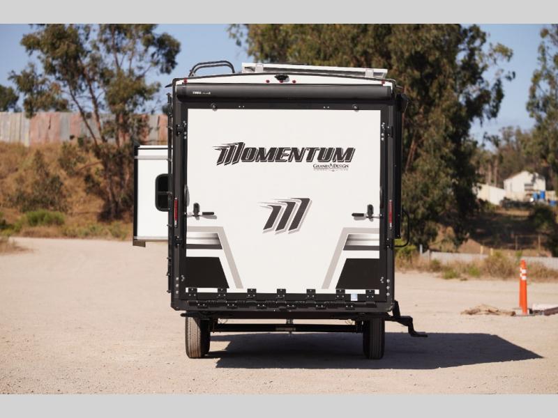 Are you looking for adventure and fun? The Momentum G-Class toy hauler by Grand Design will help you find it! You can explore during any season you choose with the Insulation Package that includes a heated and enclosed underbelly with suspended tanks, a high-capacity furnace, a moisture barrier floor enclosure, and cabinet-mounted heat ducts. Each model includes a fuel station with an interior and exterior gauge, a dovetail rear rend, and 2,500-LB tie-downs anchored into the chassis. Throughout the Momentum G-Class interior, you'll enjoy many comfortable features like large panoramic windows, a shower skylight, USB chargers in the bedroom, and residential cabinetry.
