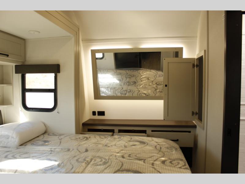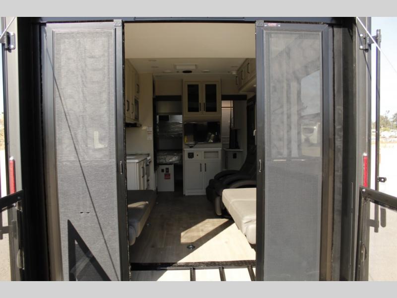 You don't have to rough it with all the amenities found in this Momentum G-Class toy hauler including your own master suite with a walk-around queen bed slide and private access into the dual-entry bathroom. The kids or your friends can sleep on the Happi-Jac rollover sofas with an optional top bed, and the Euro chairs can become the waiting area for the next rider. Keep the party going all weekend long with your very own fuel station and the 19' power awning. Come see why this model will fit perfectly into your off-road lifestyle!