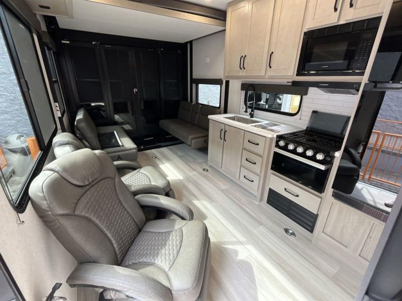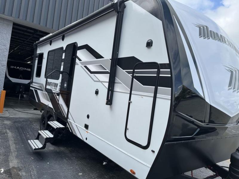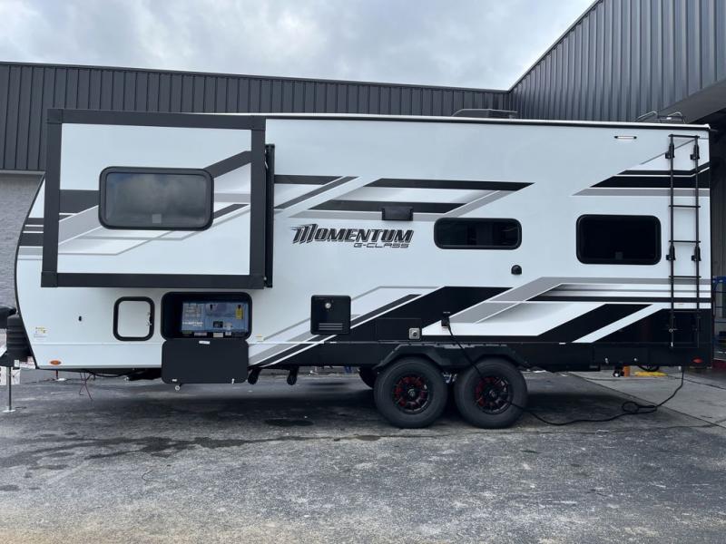 Are you looking for adventure and fun? The Momentum G-Class toy hauler by Grand Design will help you find it! You can explore during any season you choose with the Insulation Package that includes a heated and enclosed underbelly with suspended tanks, a high-capacity furnace, a moisture barrier floor enclosure, and cabinet-mounted heat ducts. Each model includes a high capacity water pump, a dovetail rear end, and 2,500-LB tie-downs anchored into the chassis. Throughout the Momentum G-Class interior, you'll enjoy many comfortable features like large panoramic windows, a shower skylight, USB chargers in the bedroom, and residential cabinetry.