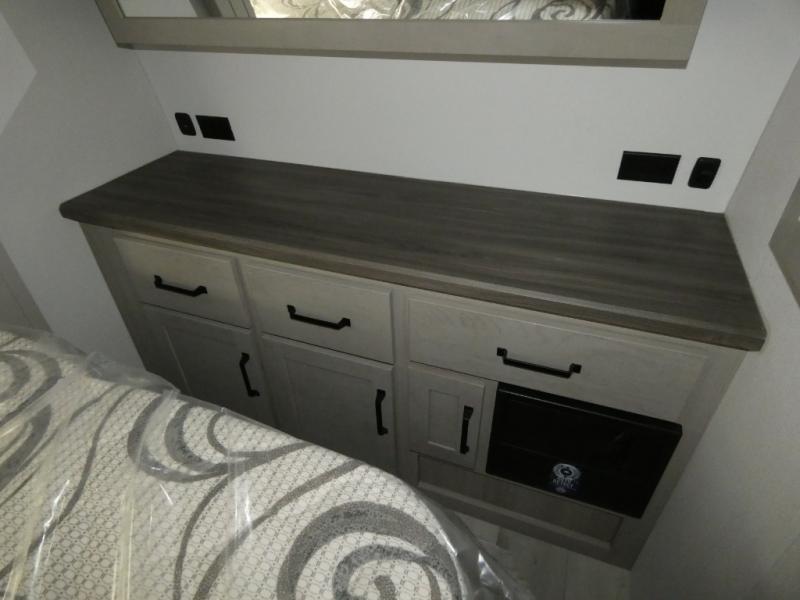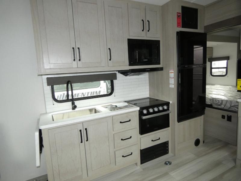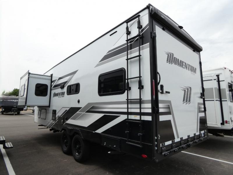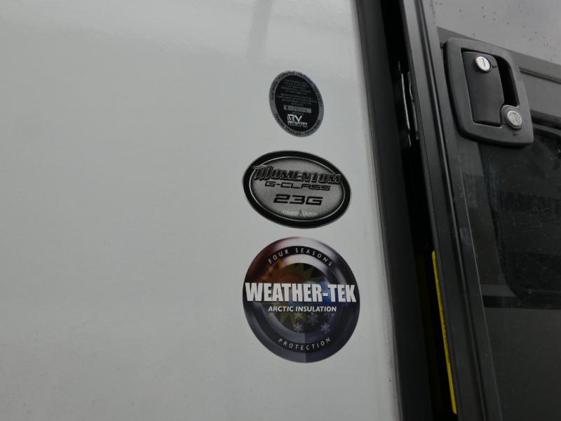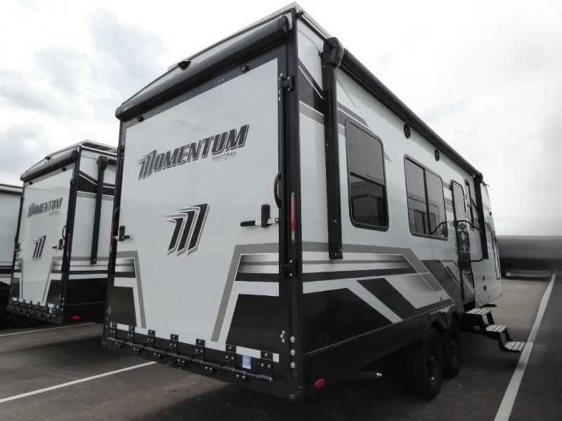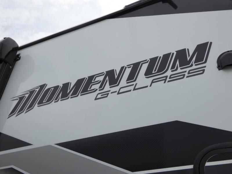 Are you looking for adventure and fun? The Momentum G-Class toy hauler by Grand Design will help you find it! You can explore during any season you choose with the Insulation Package that includes a heated and enclosed underbelly with suspended tanks, a high-capacity furnace, a moisture barrier floor enclosure, and cabinet-mounted heat ducts. Each model includes a fuel station with an interior and exterior gauge, a dovetail rear rend, and 2,500-LB tie-downs anchored into the chassis. Throughout the Momentum G-Class interior, you'll enjoy many comfortable features like large panoramic windows, a shower skylight, USB chargers in the bedroom, and residential cabinetry.
