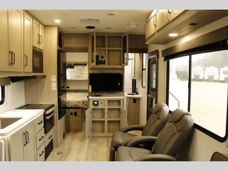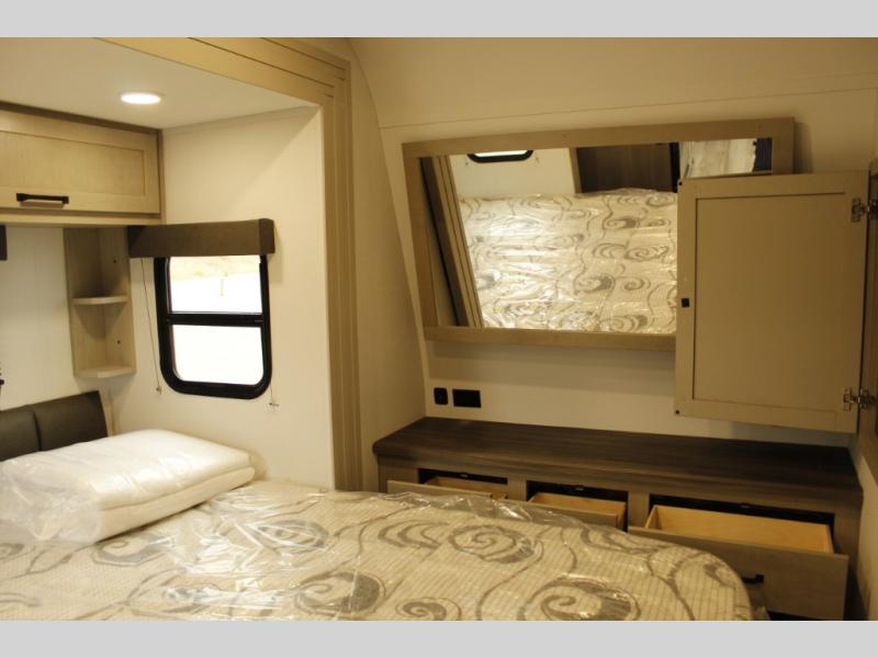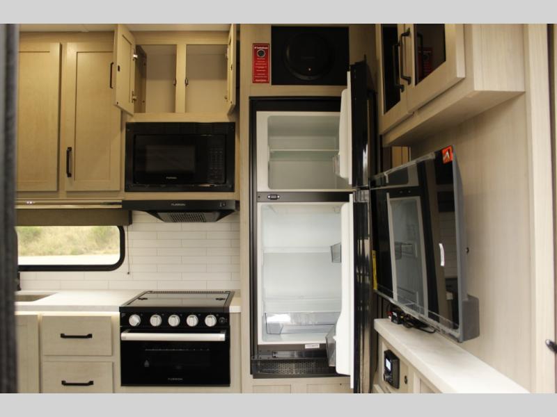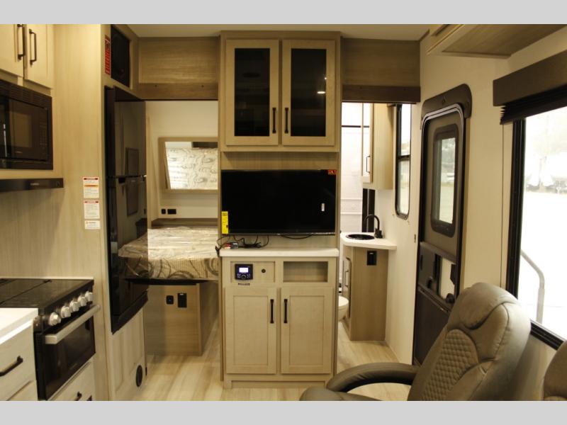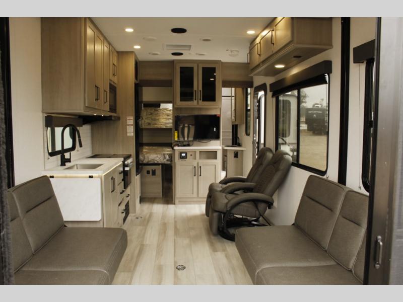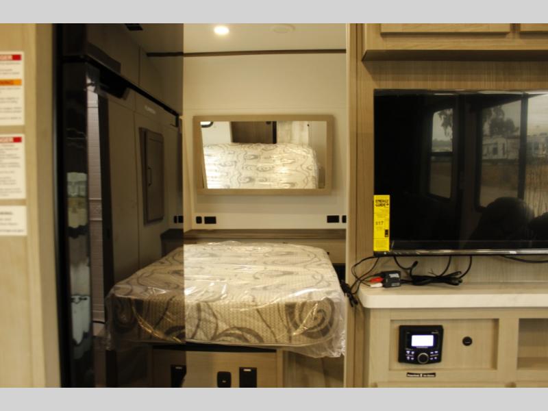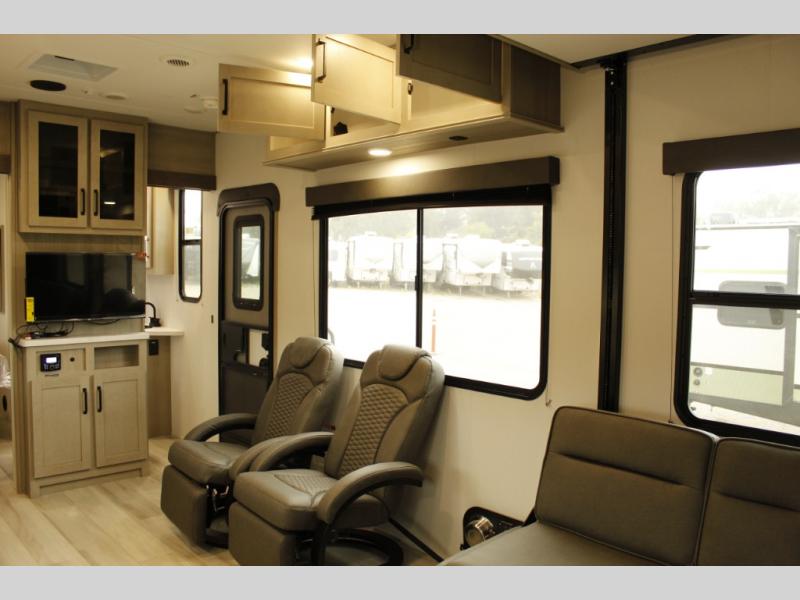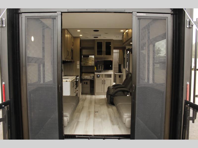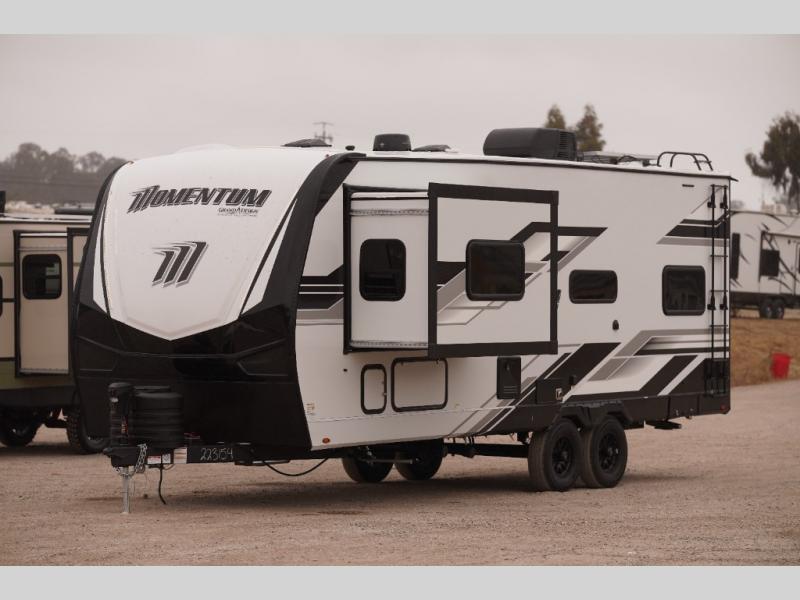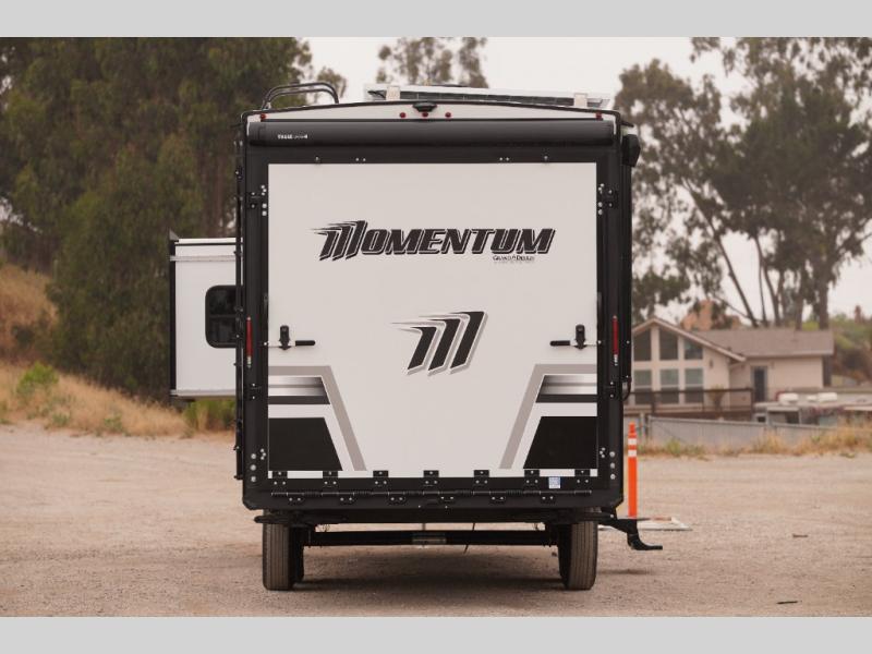Are you looking for adventure and fun? The Momentum G-Class toy hauler by Grand Design will help you find it! You can explore during any season you choose with the Insulation Package that includes a heated and enclosed underbelly with suspended tanks, a high-capacity furnace, a moisture barrier floor enclosure, and cabinet-mounted heat ducts. Each model includes a fuel station with an interior and exterior gauge, a dovetail rear rend, and 2,500-LB tie-downs anchored into the chassis. Throughout the Momentum G-Class interior, you'll enjoy many comfortable features like large panoramic windows, a shower skylight, USB chargers in the bedroom, and residential cabinetry.