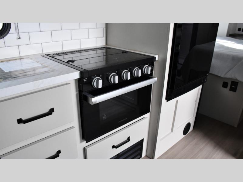Three-burner range, flip-up countertop extension, and a flip-up pet dish so even four-legged family members are catered to.