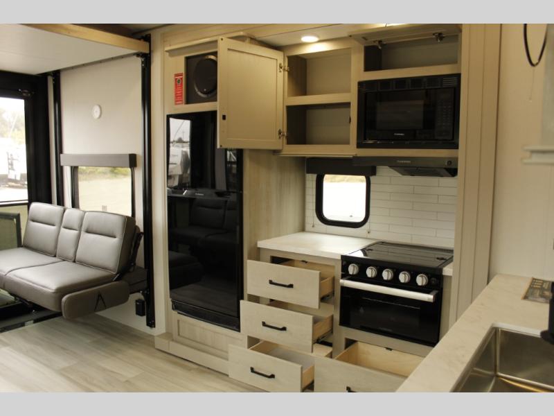 All sizes of off-road toys can fit into one of these Genesis Supreme fifth wheel toy haulers or travel trailer toy haulers! They are made for the outdoor enthusiasts and can handle harsh environments while still providing a luxurious lifestyle. With innovative floorplans built by engineers, you can know you will find what you're looking for in a toy hauler. Start your off-road journey today with your favorite model!
