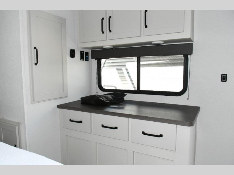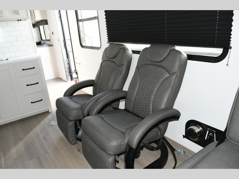 After a full day of adventure, kick back in the Euro chairs or on the dual rollover sofas with a removable table. The kitchen is designed with extra counter space, residential cabinetry, and all the essentials to keep meals hassle-free. At night, retreat to the private bedroom with a queen bed, while the double-entry bathroom provides added convenience for everyone on board.