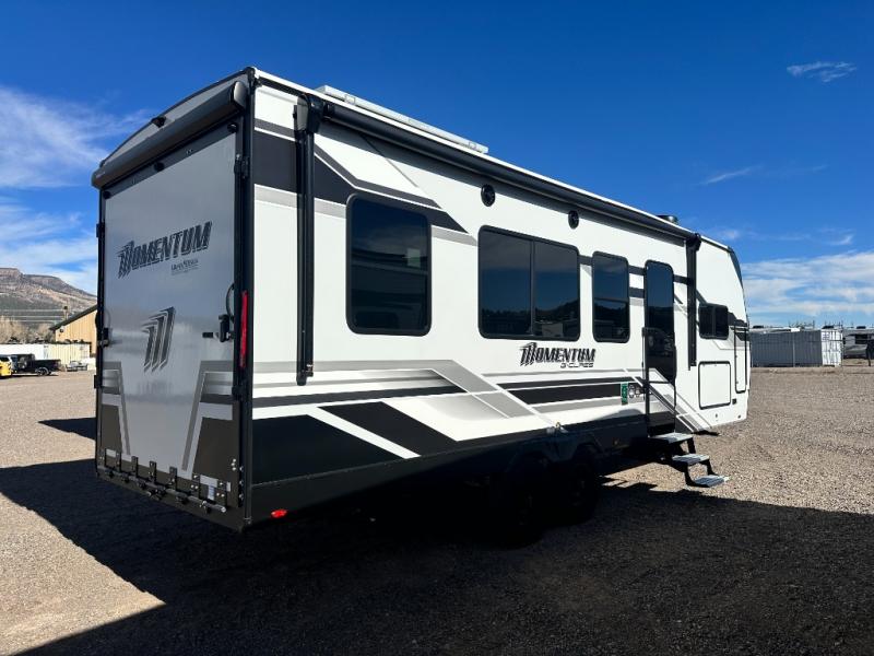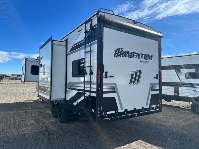 Are you looking for adventure and fun? The Momentum G-Class toy hauler by Grand Design will help you find it! You can explore during any season you choose with the Insulation Package that includes a heated and enclosed underbelly with suspended tanks, a high-capacity furnace, a moisture barrier floor enclosure, and cabinet-mounted heat ducts. Each model includes a fuel station with an interior and exterior gauge, a dovetail rear rend, and 2,500-LB tie-downs anchored into the chassis. Throughout the Momentum G-Class interior, you'll enjoy many comfortable features like large panoramic windows, a shower skylight, USB chargers in the bedroom, and residential cabinetry.