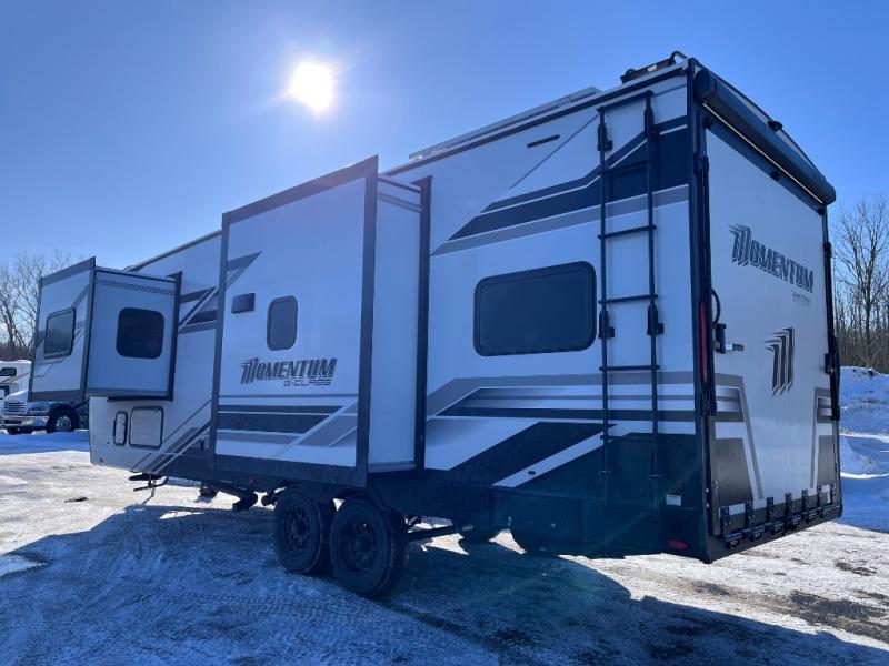 Are you looking for adventure and fun? The Momentum G-Class toy hauler by Grand Design will help you find it! You can explore during any season you choose with the Insulation Package that includes a heated and enclosed underbelly with suspended tanks, a high-capacity furnace, a moisture barrier floor enclosure, and cabinet-mounted heat ducts. Each model includes a high capacity water pump, a dovetail rear end, and 2,500-LB tie-downs anchored into the chassis. Throughout the Momentum G-Class interior, you'll enjoy many comfortable features like large panoramic windows, a shower skylight, USB chargers in the bedroom, and residential cabinetry.