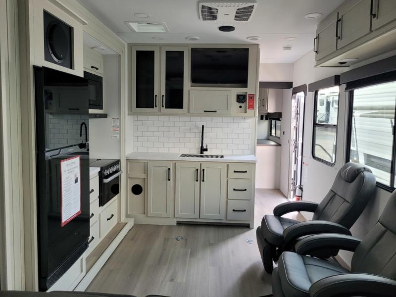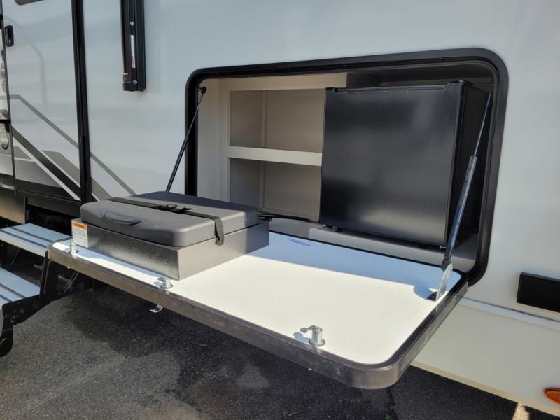 It's time to load up your family and off-road toys to enjoy the great outdoors at the speed you like with this Momentum G-Class toy hauler. Once at your destination, unload the toys from the 13' 6" of cargo space, put out the two slides, and start having fun. You can cook meals in the spacious kitchen area with extra counter space and relax in the Euro chairs or on the rollover sofas with a table. You can even cook at the outside kitchen underneath the 19' power awning.