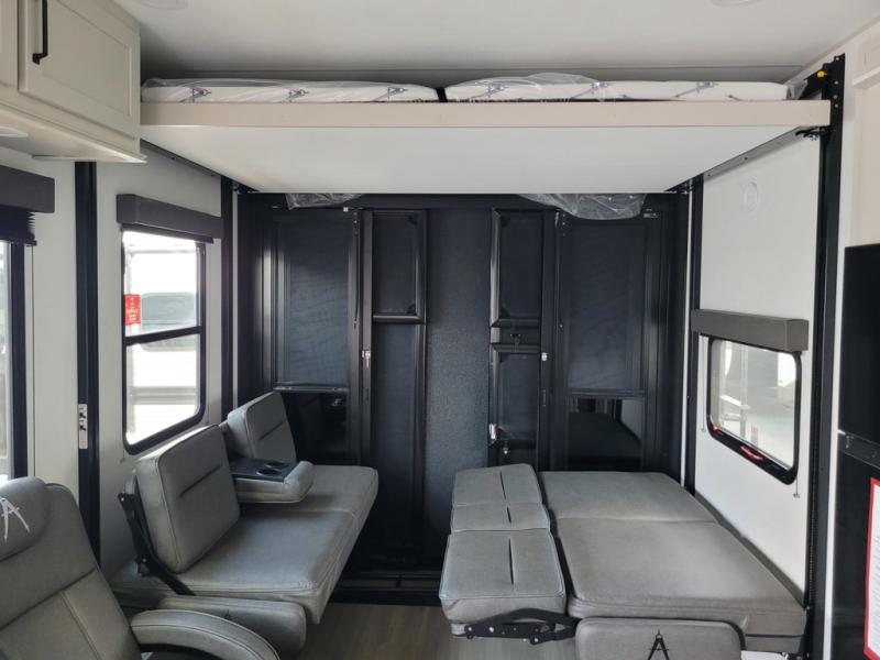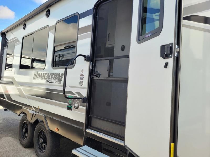 Are you looking for adventure and fun? The Momentum G-Class toy hauler by Grand Design will help you find it! You can explore during any season you choose with the Insulation Package that includes a heated and enclosed underbelly with suspended tanks, a high-capacity furnace, a moisture barrier floor enclosure, and cabinet-mounted heat ducts. Each model includes a high capacity water pump, a dovetail rear end, and 2,500-LB tie-downs anchored into the chassis. Throughout the Momentum G-Class interior, you'll enjoy many comfortable features like large panoramic windows, a shower skylight, USB chargers in the bedroom, and residential cabinetry.