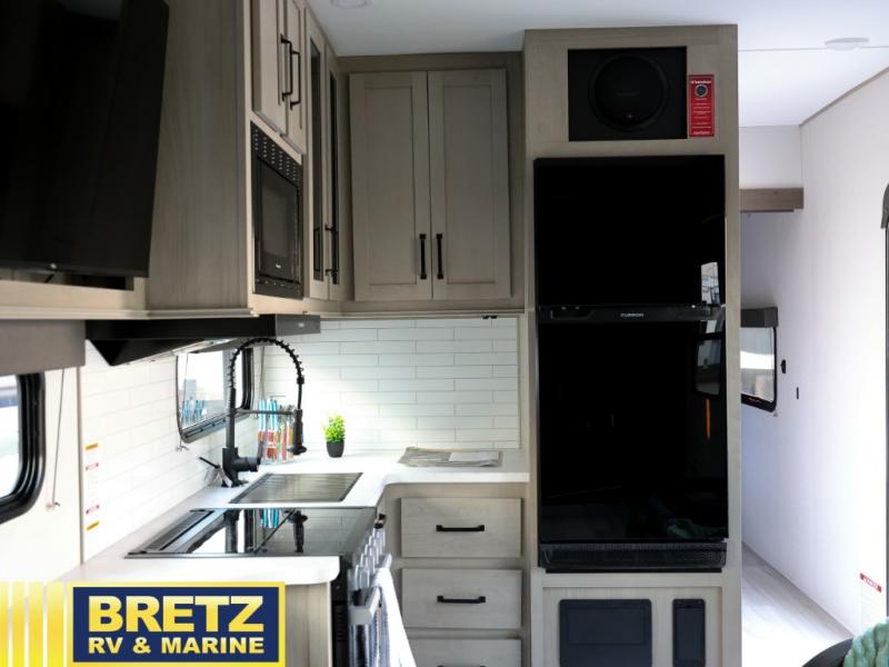 Are you looking for adventure and fun? The Momentum G-Class toy hauler by Grand Design will help you find it! You can explore during any season you choose with the Insulation Package that includes a heated and enclosed underbelly with suspended tanks, a high-capacity furnace, a moisture barrier floor enclosure, and cabinet-mounted heat ducts. Each model includes a fuel station with an interior and exterior gauge, a dovetail rear rend, and 2,500-LB tie-downs anchored into the chassis. Throughout the Momentum G-Class interior, you'll enjoy many comfortable features like large panoramic windows, a shower skylight, USB chargers in the bedroom, and residential cabinetry.