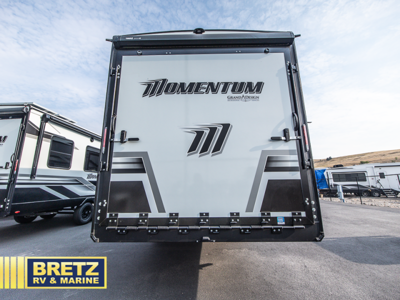 Are you looking for adventure and fun? The Momentum G-Class toy hauler by Grand Design will help you find it! You can explore during any season you choose with the Insulation Package that includes a heated and enclosed underbelly with suspended tanks, a high-capacity furnace, a moisture barrier floor enclosure, and cabinet-mounted heat ducts. Each model includes a fuel station with an interior and exterior gauge, a dovetail rear rend, and 2,500-LB tie-downs anchored into the chassis. Throughout the Momentum G-Class interior, you'll enjoy many comfortable features like large panoramic windows, a shower skylight, USB chargers in the bedroom, and residential cabinetry.