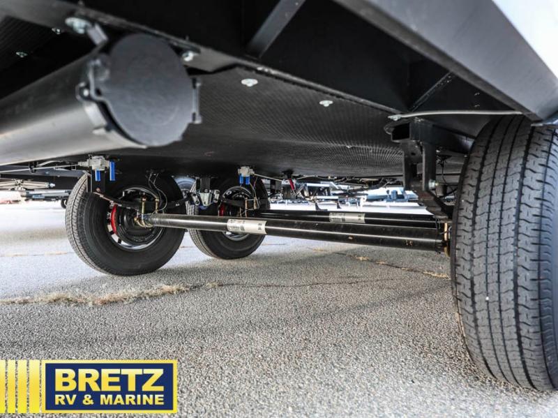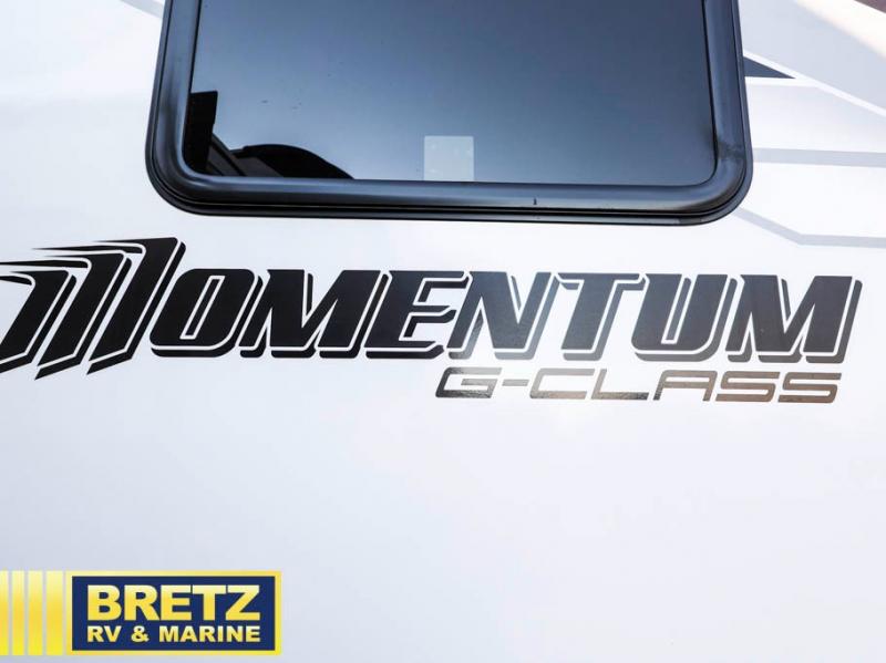 Are you looking for adventure and fun? The Momentum G-Class toy hauler by Grand Design will help you find it! You can explore during any season you choose with the Insulation Package that includes a heated and enclosed underbelly with suspended tanks, a high-capacity furnace, a moisture barrier floor enclosure, and cabinet-mounted heat ducts. Each model includes a fuel station with an interior and exterior gauge, a dovetail rear rend, and 2,500-LB tie-downs anchored into the chassis. Throughout the Momentum G-Class interior, you'll enjoy many comfortable features like large panoramic windows, a shower skylight, USB chargers in the bedroom, and residential cabinetry.