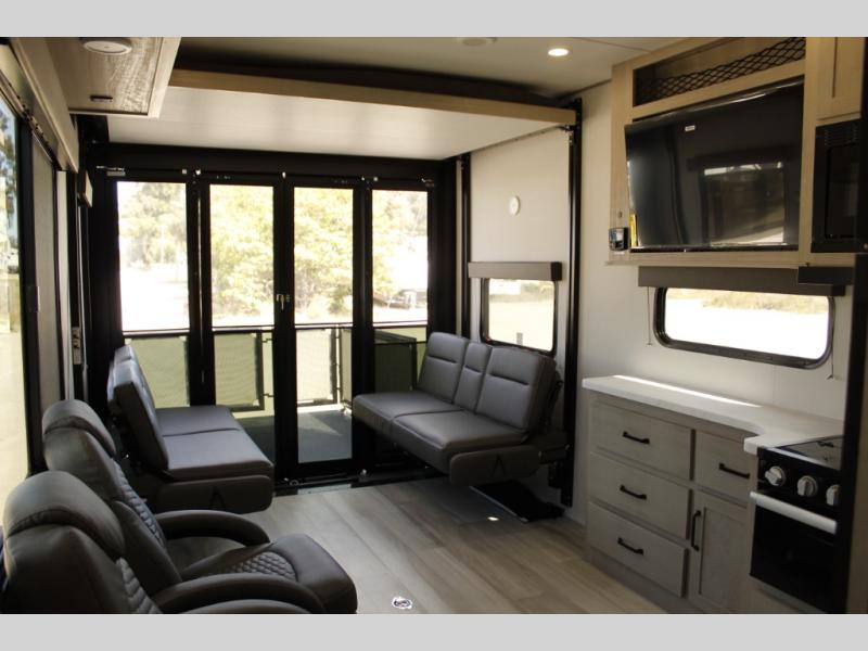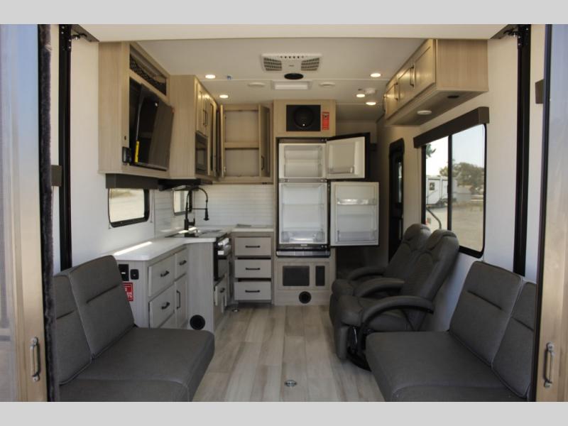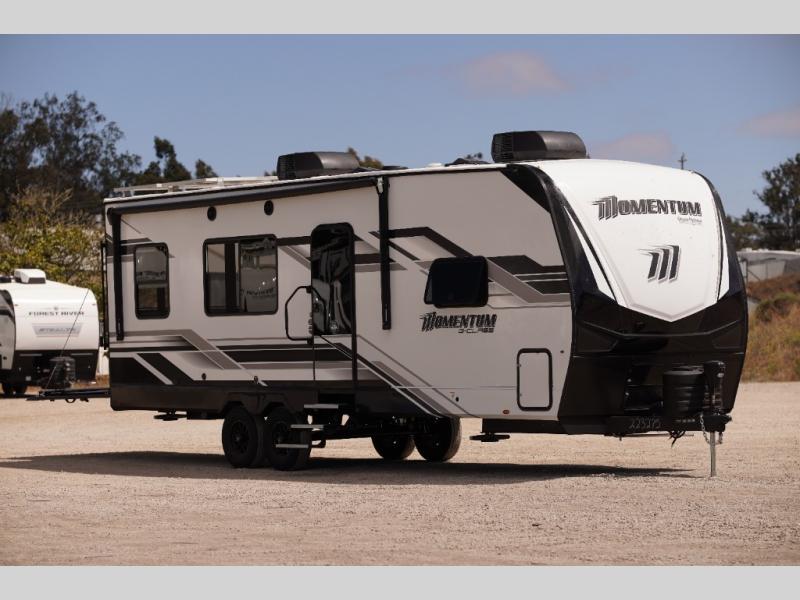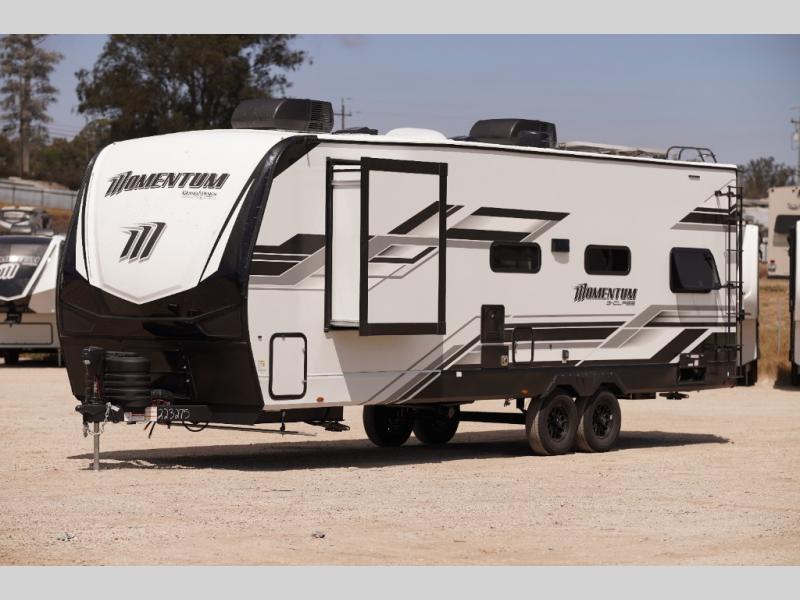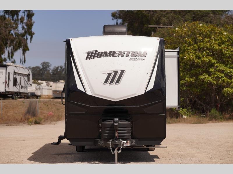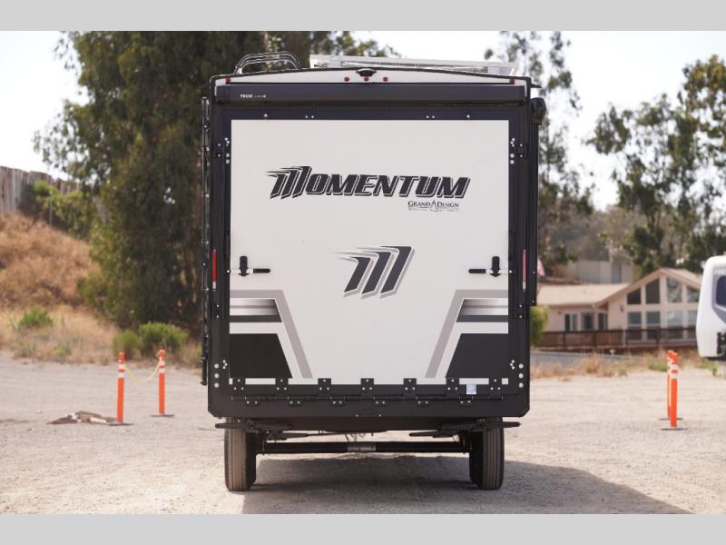 Are you looking for adventure and fun? The Momentum G-Class toy hauler by Grand Design will help you find it! You can explore during any season you choose with the Insulation Package that includes a heated and enclosed underbelly with suspended tanks, a high-capacity furnace, a moisture barrier floor enclosure, and cabinet-mounted heat ducts. Each model includes a fuel station with an interior and exterior gauge, a dovetail rear rend, and 2,500-LB tie-downs anchored into the chassis. Throughout the Momentum G-Class interior, you'll enjoy many comfortable features like large panoramic windows, a shower skylight, USB chargers in the bedroom, and residential cabinetry.