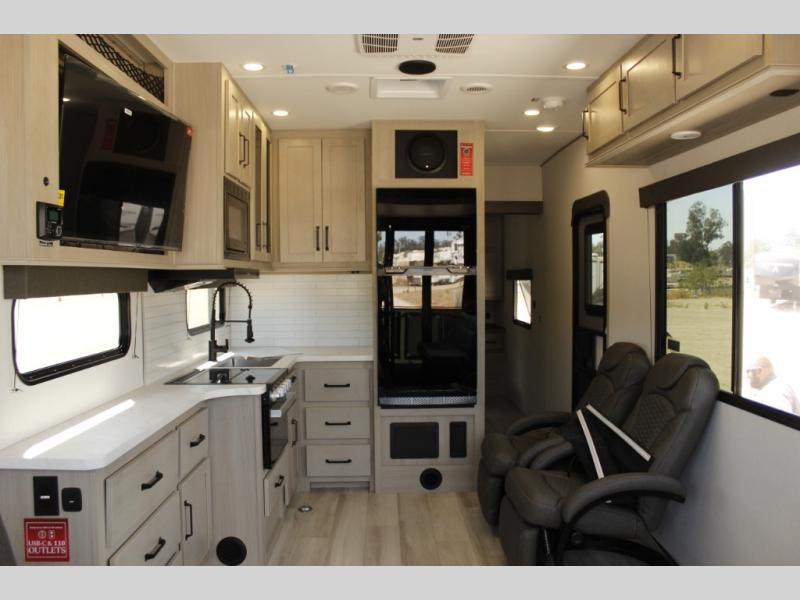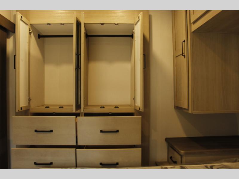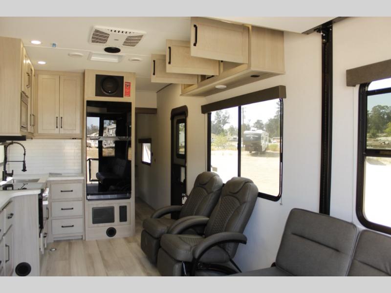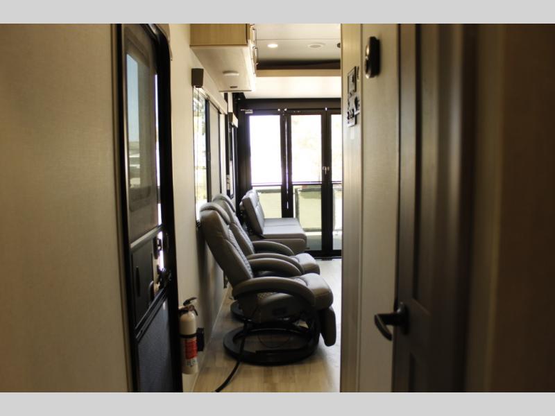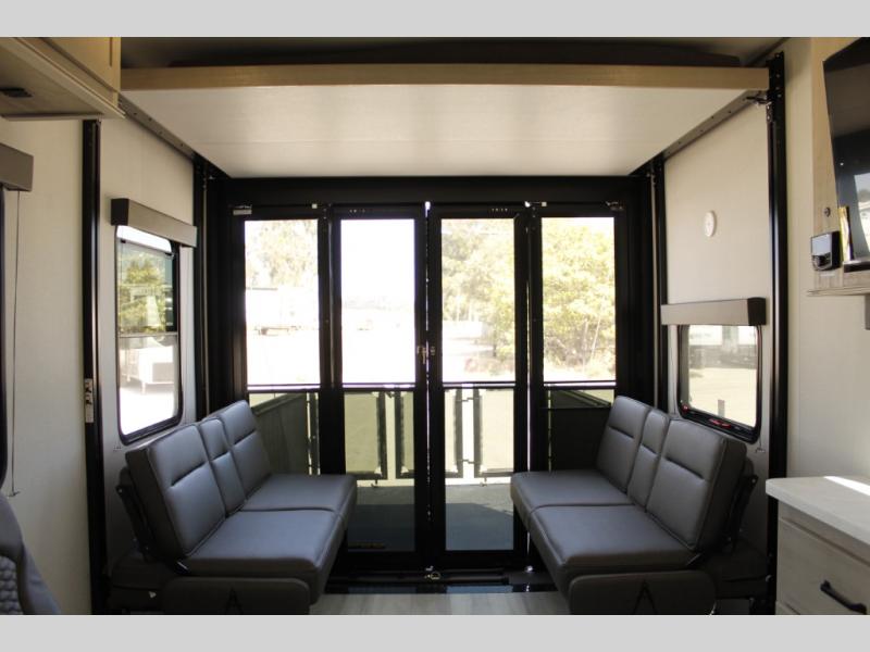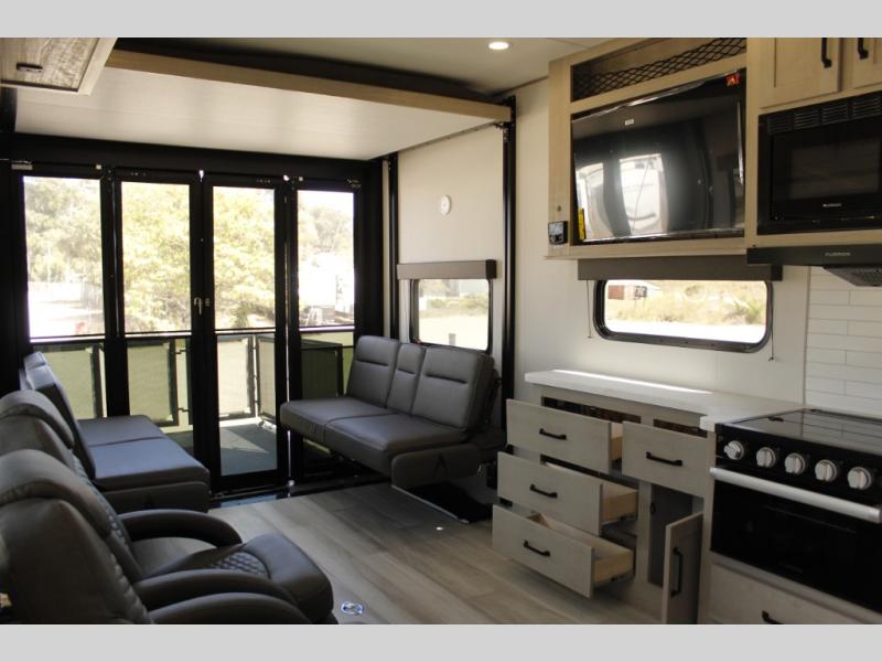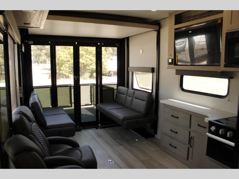 Are you looking for adventure and fun? The Momentum G-Class toy hauler by Grand Design will help you find it! You can explore during any season you choose with the Insulation Package that includes a heated and enclosed underbelly with suspended tanks, a high-capacity furnace, a moisture barrier floor enclosure, and cabinet-mounted heat ducts. Each model includes a fuel station with an interior and exterior gauge, a dovetail rear rend, and 2,500-LB tie-downs anchored into the chassis. Throughout the Momentum G-Class interior, you'll enjoy many comfortable features like large panoramic windows, a shower skylight, USB chargers in the bedroom, and residential cabinetry.