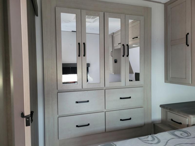 Are you looking for adventure and fun? The Momentum G-Class toy hauler by Grand Design will help you find it! You can explore during any season you choose with the Insulation Package that includes a heated and enclosed underbelly with suspended tanks, a high-capacity furnace, a moisture barrier floor enclosure, and cabinet-mounted heat ducts. Each model includes a fuel station with an interior and exterior gauge, a dovetail rear rend, and 2,500-LB tie-downs anchored into the chassis. Throughout the Momentum G-Class interior, you'll enjoy many comfortable features like large panoramic windows, a shower skylight, USB chargers in the bedroom, and residential cabinetry.