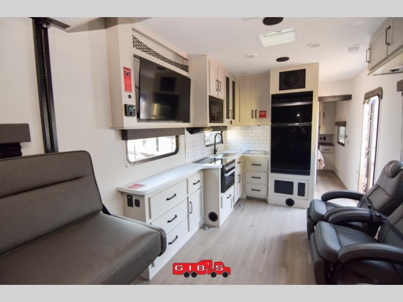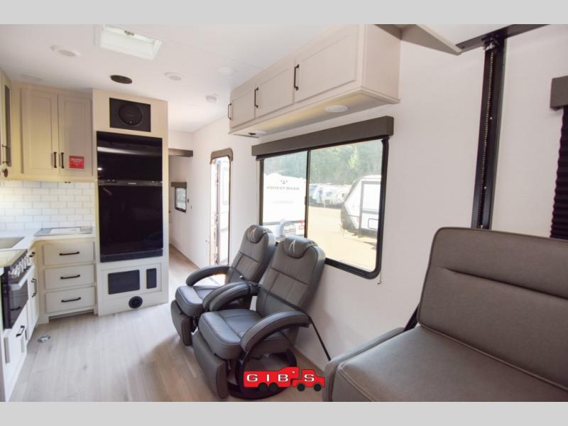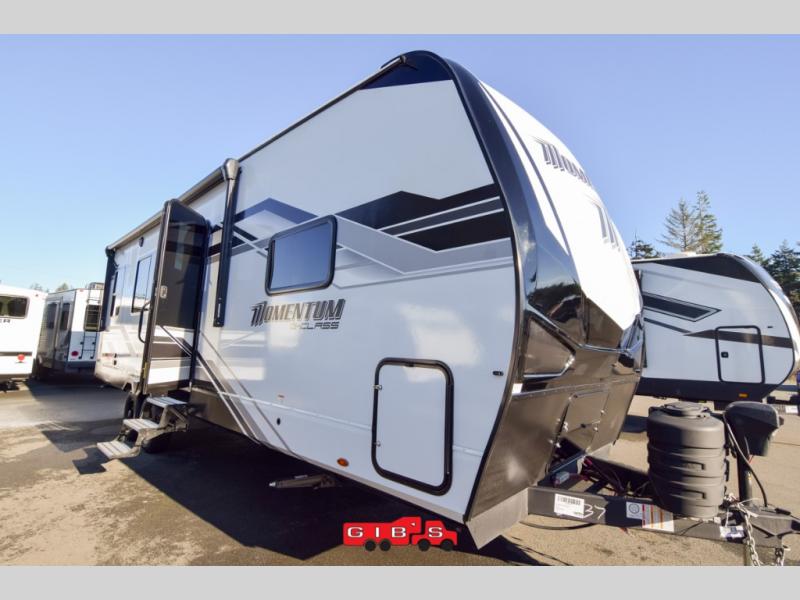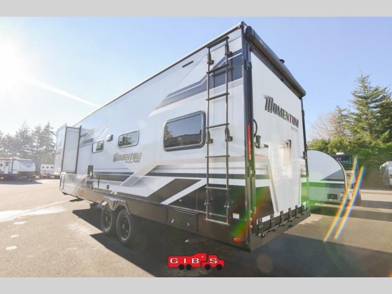 Are you looking for adventure and fun? The Momentum G-Class toy hauler by Grand Design will help you find it! You can explore during any season you choose with the Insulation Package that includes a heated and enclosed underbelly with suspended tanks, a high-capacity furnace, a moisture barrier floor enclosure, and cabinet-mounted heat ducts. Each model includes a high capacity water pump, a dovetail rear end, and 2,500-LB tie-downs anchored into the chassis. Throughout the Momentum G-Class interior, you'll enjoy many comfortable features like large panoramic windows, a shower skylight, USB chargers in the bedroom, and residential cabinetry.
