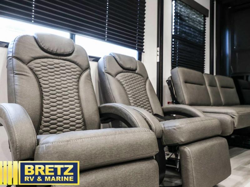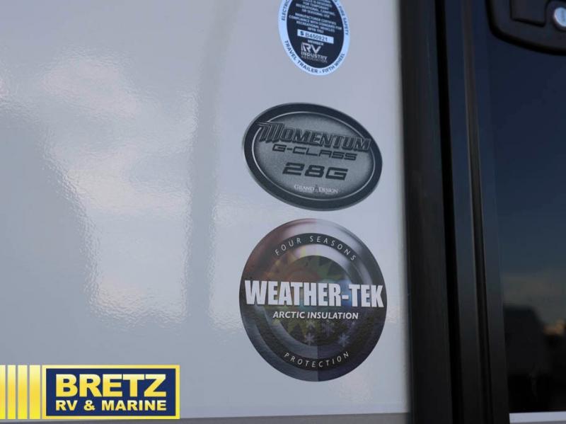 Are you looking for adventure and fun? The Momentum G-Class toy hauler by Grand Design will help you find it! You can explore during any season you choose with the Insulation Package that includes a heated and enclosed underbelly with suspended tanks, a high-capacity furnace, a moisture barrier floor enclosure, and cabinet-mounted heat ducts. Each model includes a fuel station with an interior and exterior gauge, a dovetail rear rend, and 2,500-LB tie-downs anchored into the chassis. Throughout the Momentum G-Class interior, you'll enjoy many comfortable features like large panoramic windows, a shower skylight, USB chargers in the bedroom, and residential cabinetry.