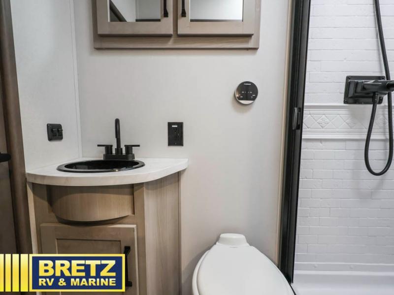Just imagine you are unloading your toys at your favorite destination from 16' 6" of cargo space in this Momentum G-Class toy hauler. The chef of the family will love having the option to cook indoors or outdoors at the outside kitchen that includes an exterior refrigerator for cold drinks. You will have Happi-Jac rollover sofas and a third rollover sofa for your guests to sleep on, while you take the queen bed slide out in the front bedroom. And an optional top bed can be added above the sofas if you need more sleeping space!