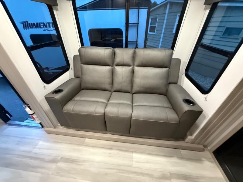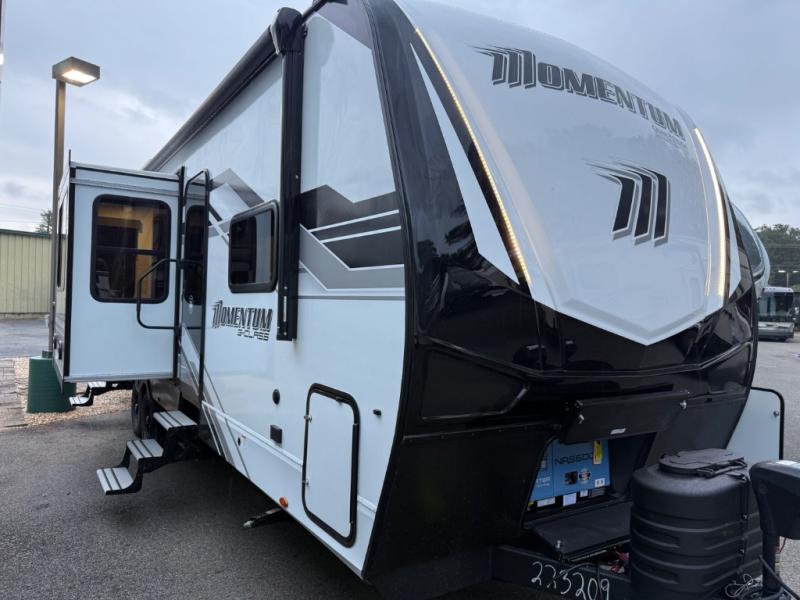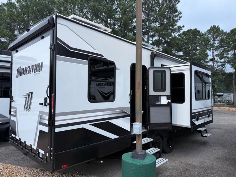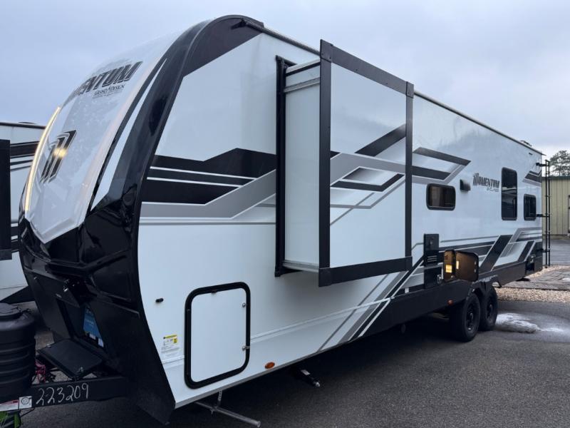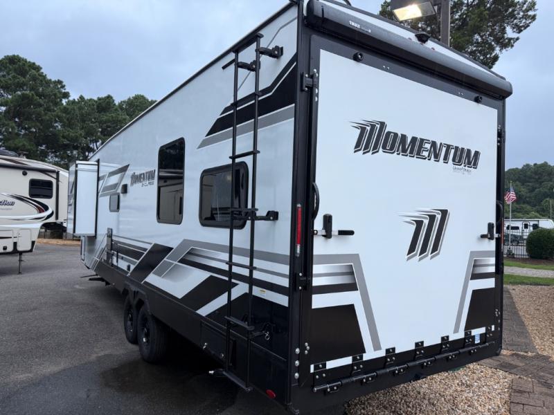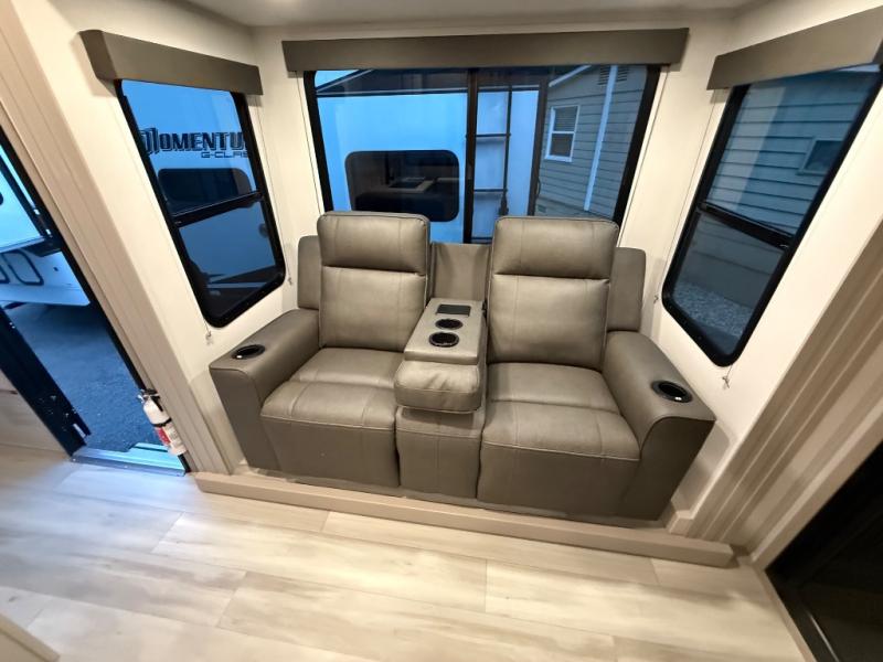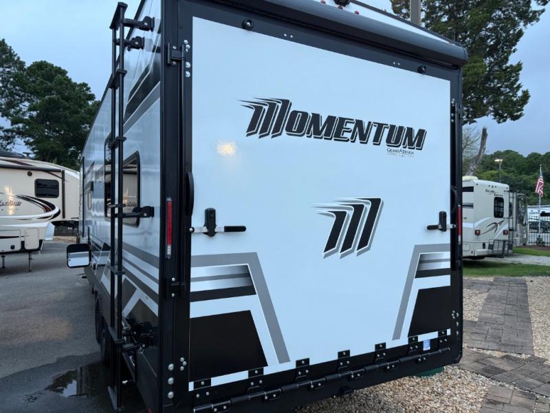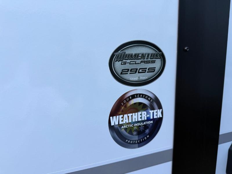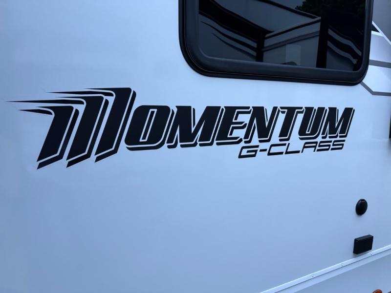 Are you looking for adventure and fun? The Momentum G-Class toy hauler by Grand Design will help you find it! You can explore during any season you choose with the Insulation Package that includes a heated and enclosed underbelly with suspended tanks, a high-capacity furnace, a moisture barrier floor enclosure, and cabinet-mounted heat ducts. Each model includes a fuel station with an interior and exterior gauge, a dovetail rear rend, and 2,500-LB tie-downs anchored into the chassis. Throughout the Momentum G-Class interior, you'll enjoy many comfortable features like large panoramic windows, a shower skylight, USB chargers in the bedroom, and residential cabinetry.