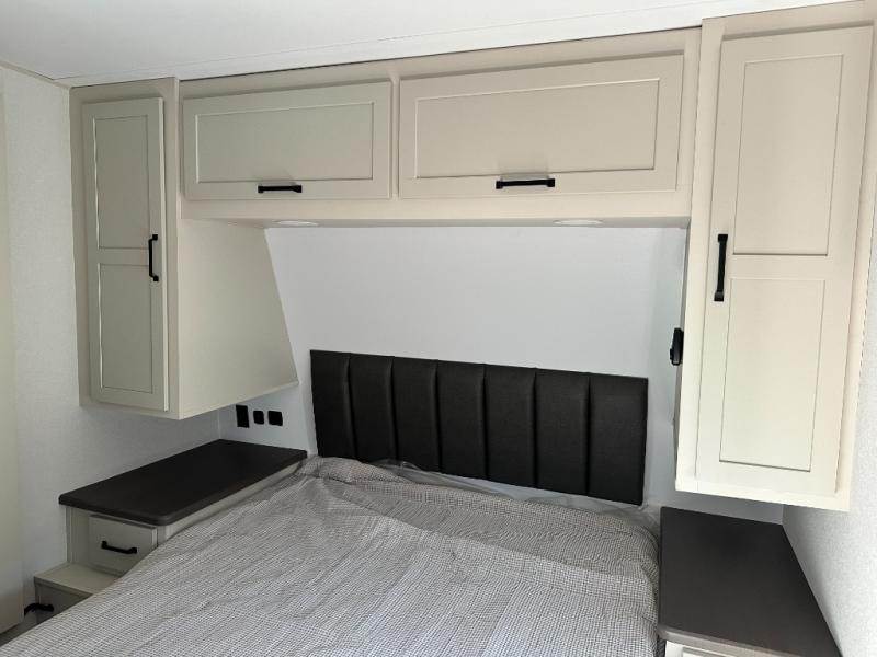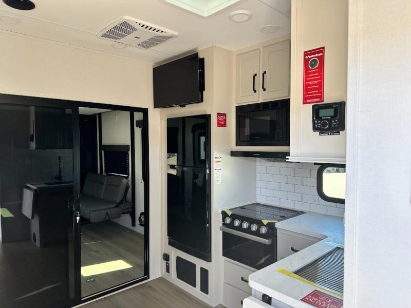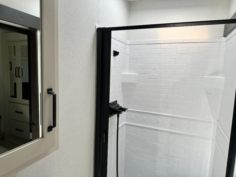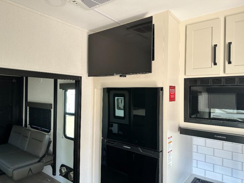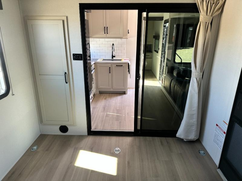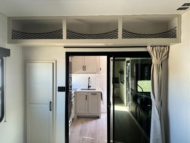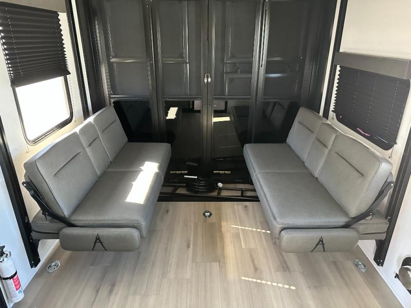Start your engines for a fun weekend with your toys and your family in this Momentum G-Class toy hauler. The 11' separate garage includes Happi-Jac rollover sofas with a table and an optional top bed, plus a flip-up pet dish for your furry friends! There is even a second entry door which leads directly into the garage so that you don't have to walk through the entire trailer just to get to your cargo. In the front of this unit, you will have your own master suite that has private access to the residential walk-in shower in the dual-entry bathroom. The main living and kitchen area offers everything you need and would want, including theater seating and a TV with storage above the refrigerator!
