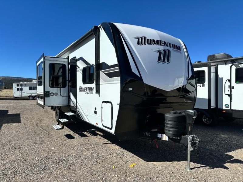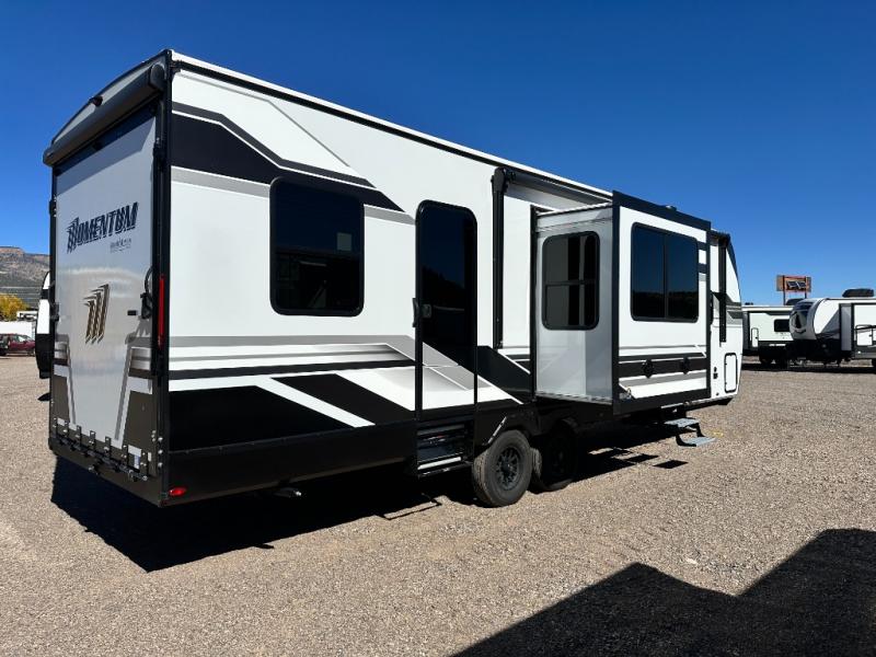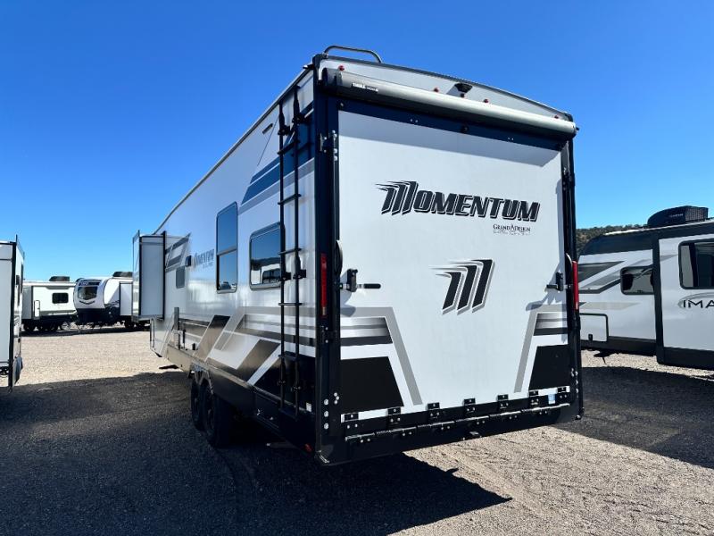 Are you looking for adventure and fun? The Momentum G-Class toy hauler by Grand Design will help you find it! You can explore during any season you choose with the Insulation Package that includes a heated and enclosed underbelly with suspended tanks, a high-capacity furnace, a moisture barrier floor enclosure, and cabinet-mounted heat ducts. Each model includes a fuel station with an interior and exterior gauge, a dovetail rear rend, and 2,500-LB tie-downs anchored into the chassis. Throughout the Momentum G-Class interior, you'll enjoy many comfortable features like large panoramic windows, a shower skylight, USB chargers in the bedroom, and residential cabinetry.