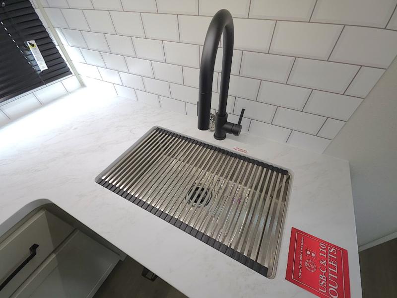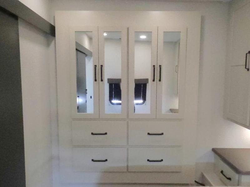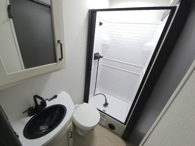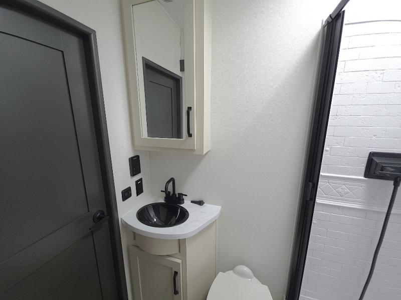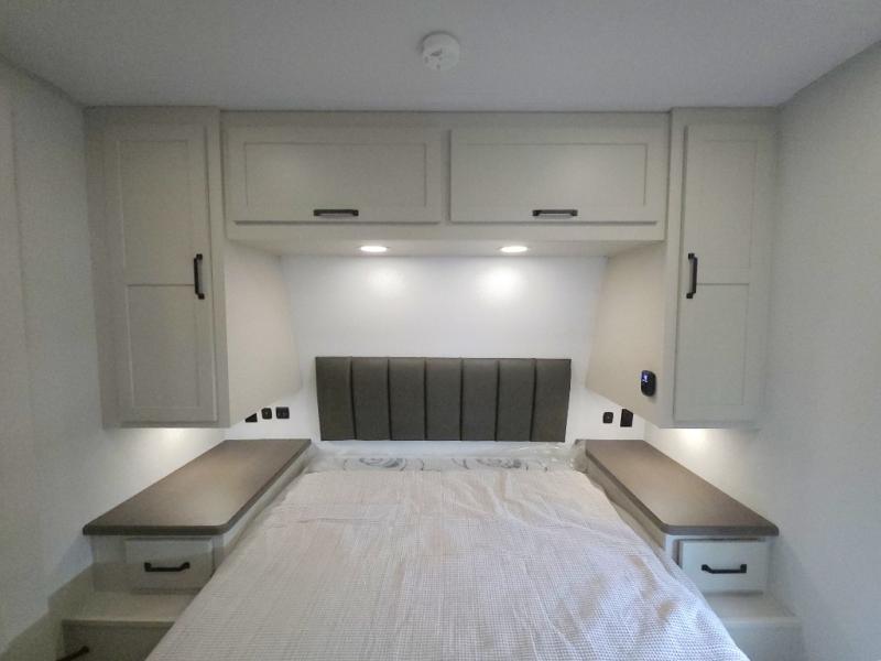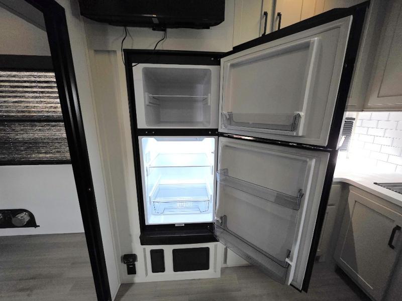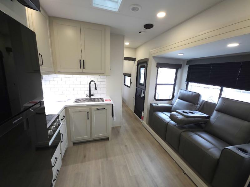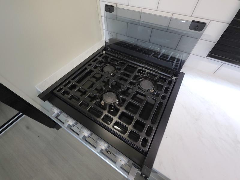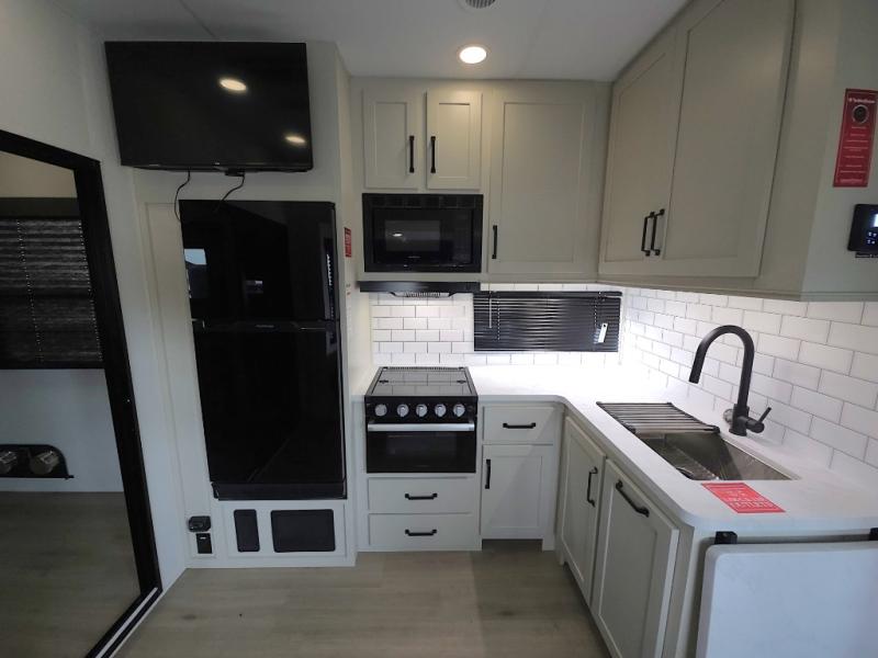 Inside, you’ll be surrounded by upscale residential finishes, including large panoramic windows, residential cabinetry, and a shower skylight that brightens your bathroom space. USB chargers in the bedroom, smart storage solutions, and a full kitchen with modern appliances make life on the road feel just like home. Whether you’re camping in the woods or tailgating at the track, the Momentum G-Class 29GS gives you the freedom to do it all.