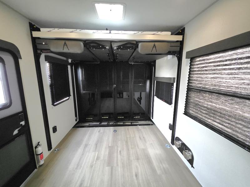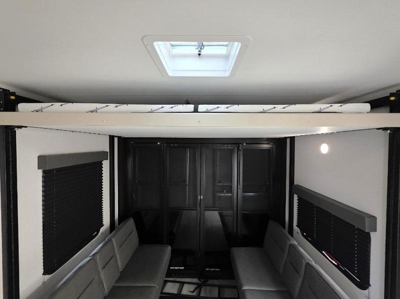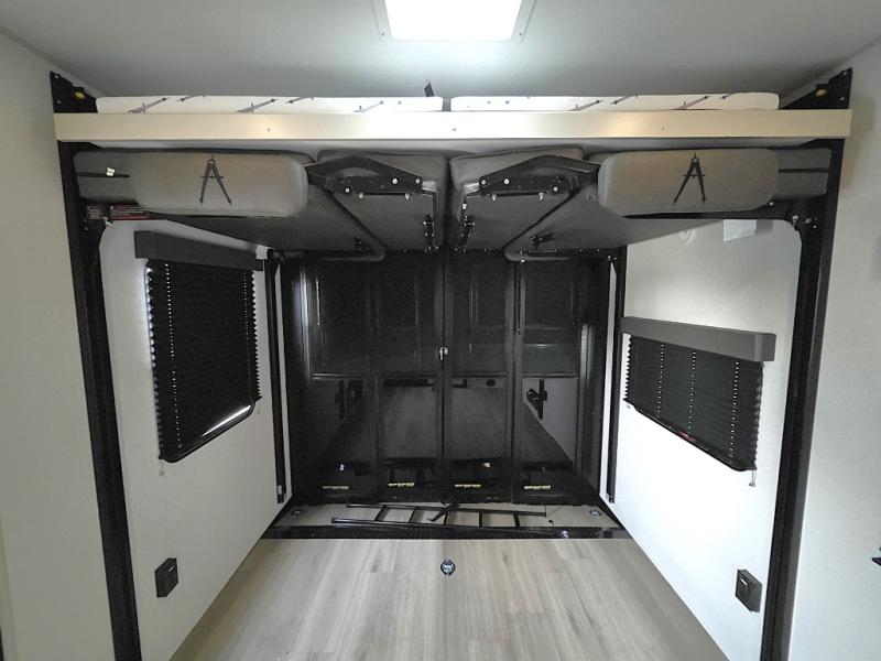11' Separate Garage – Load up your ATVs, bikes, kayaks, or outdoor gear with ease. Once parked, the space transforms into a comfortable lounge or extra sleeping area thanks to the Happi-Jac rollover sofas, table, and optional top bed.