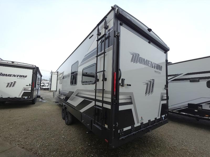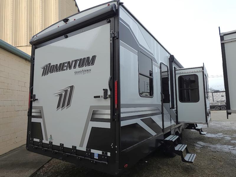 The Grand Design Momentum G-Class toy hauler is engineered to handle your toughest trips without sacrificing comfort. With the Insulation Package, you can travel year-round thanks to the heated and enclosed underbelly, high-capacity furnace, and moisture barrier floor enclosure. Heavy-duty 2,500-lb tie-downs anchored to the chassis keep your gear secure, while the dovetail rear ramp makes loading and unloading smoother than ever.