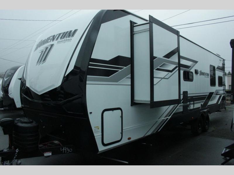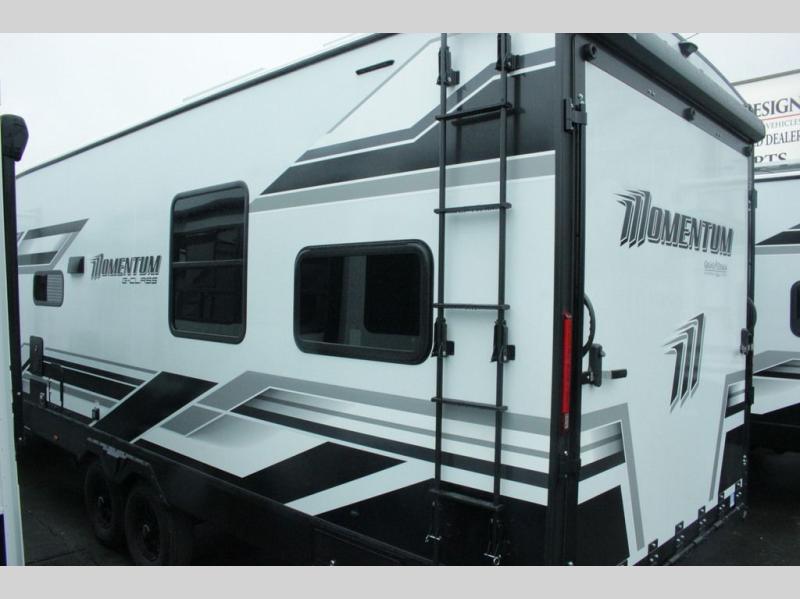 Are you looking for adventure and fun? The Momentum G-Class toy hauler by Grand Design will help you find it! You can explore during any season you choose with the Insulation Package that includes a heated and enclosed underbelly with suspended tanks, a high-capacity furnace, a moisture barrier floor enclosure, and cabinet-mounted heat ducts. Each model includes a high capacity water pump, a dovetail rear end, and 2,500-LB tie-downs anchored into the chassis. Throughout the Momentum G-Class interior, you'll enjoy many comfortable features like large panoramic windows, a shower skylight, USB chargers in the bedroom, and residential cabinetry.